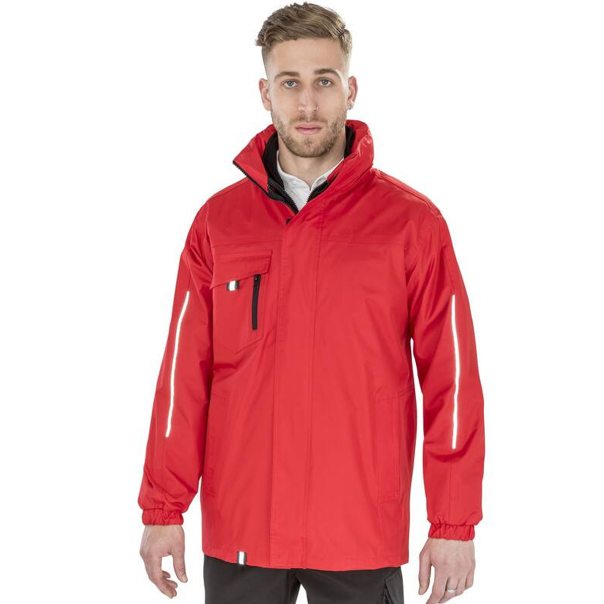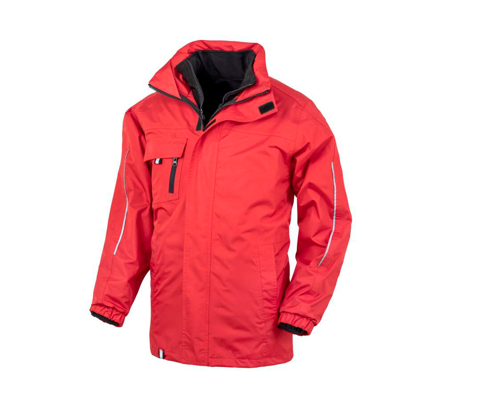 Veste 3 en 1 essentiel. Coutures thermocollées. Poches intérieures. Poche poitrine zippée. Fermeture zippée 2 directions. Poches latérales. Finitions réfléchissantes. Rabat de protection avec fermeture Velcro®. Capuche dans le col avec cordon de serrage. Système d’attache de la veste intérieure par un zip supplémentaire. Veste Softshell intérieure : poches avant zippées. Poignets élastiqués. 100% polyester.