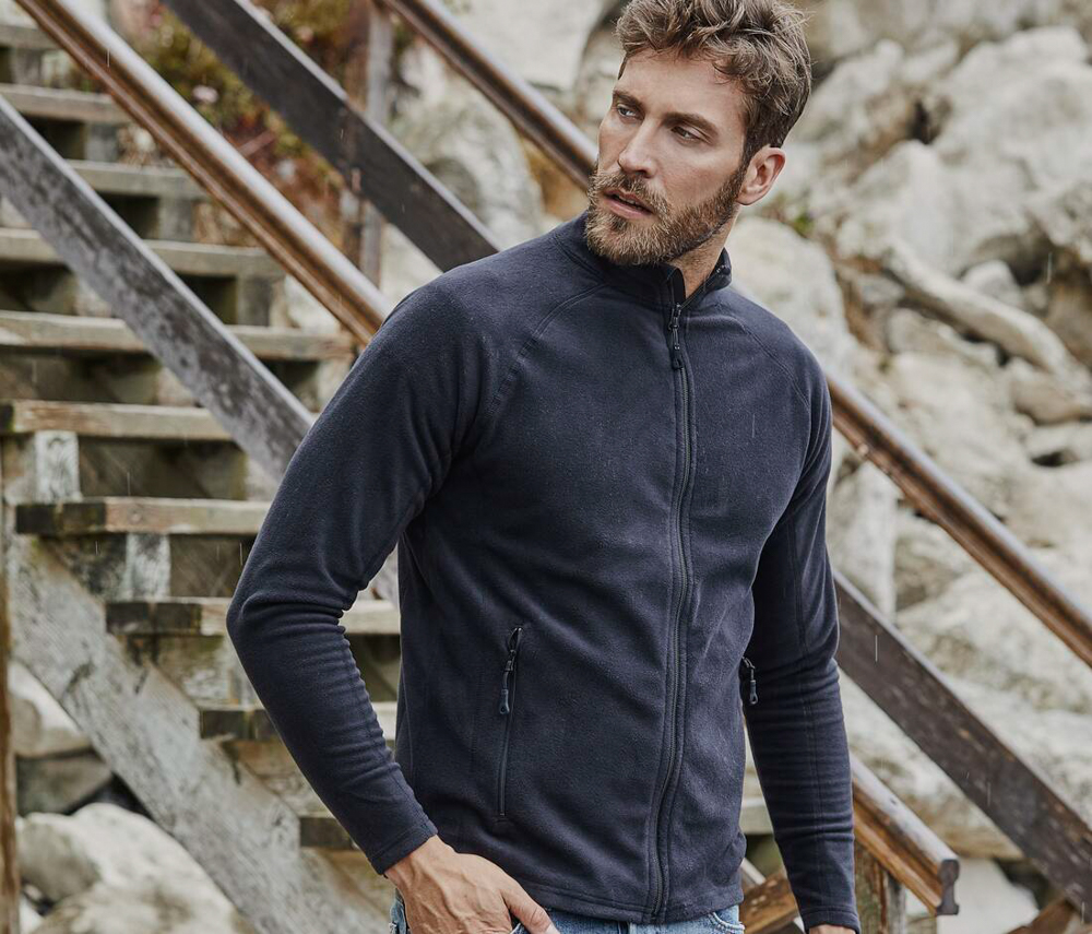 Veste polaire homme. Veste micropolaire légère. Grand zip. 2 poches latérales zippées. Anti-peluche. Coupe ajustée. 100% polyester.