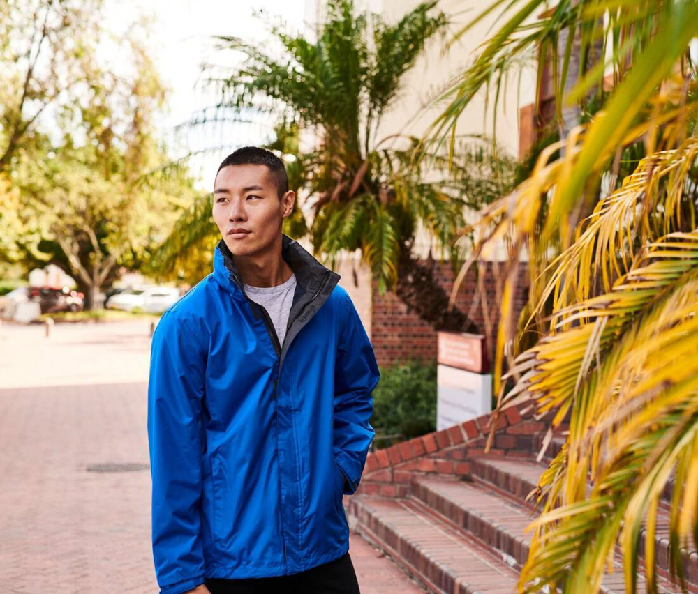 Veste imperméable. Imperméable Hydrafort 5000. Toucher peau de pêche. Coupe-vent. Coutures contrecollées. Capuche dans le col réglable. 2 poches avant zippées. 1 poche intérieure avec ouverture pour écouteurs. Poignets réglables. Ourlet avec cordon réglable élastiqué. Accès personnalisation. Extérieur : 100% polyester. Intérieur : polyester filet.