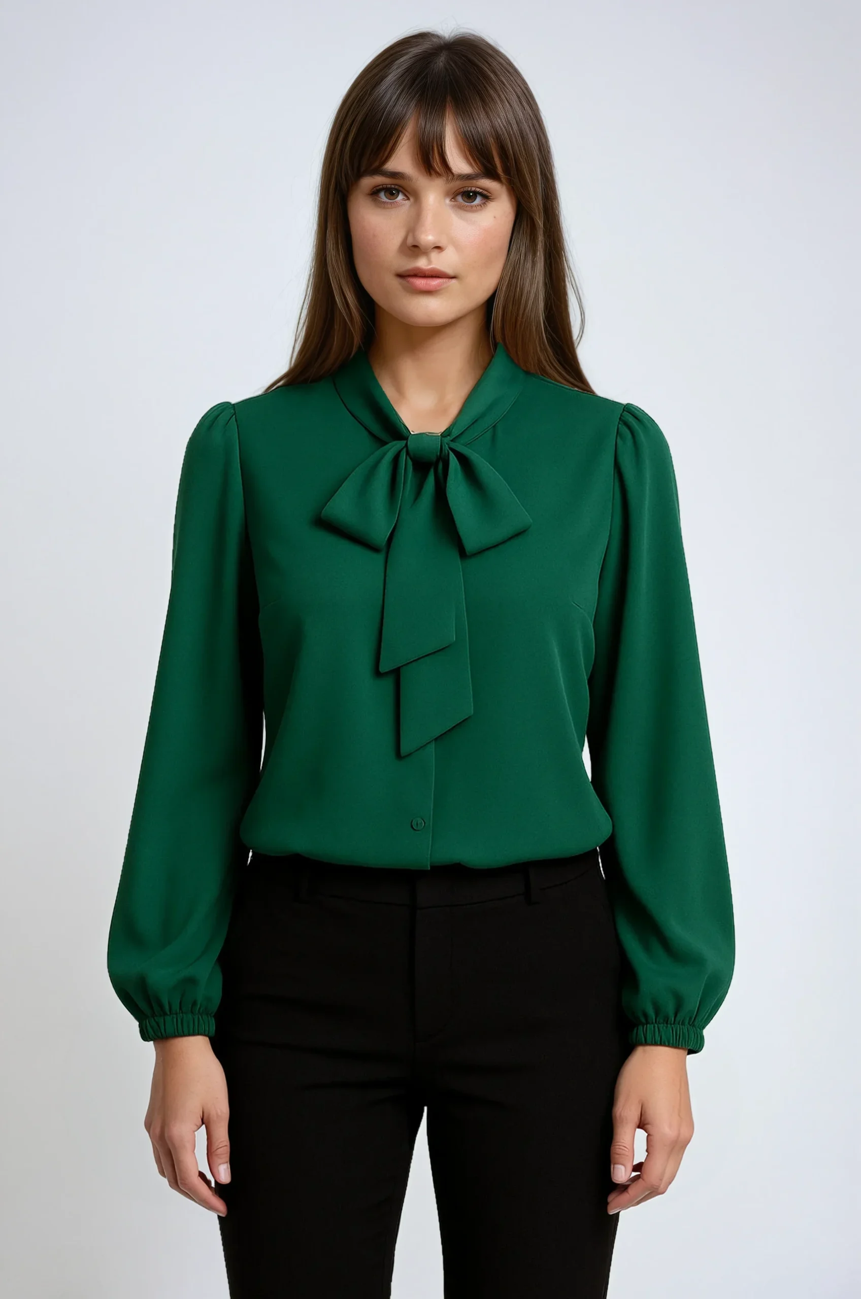 Cette blouse à manches longues avec un nœud chic est un ajout parfait à votre garde-robe. Idéale pour des looks professionnels ou décontractés, elle vous accompagne en toute occasion avec élégance.