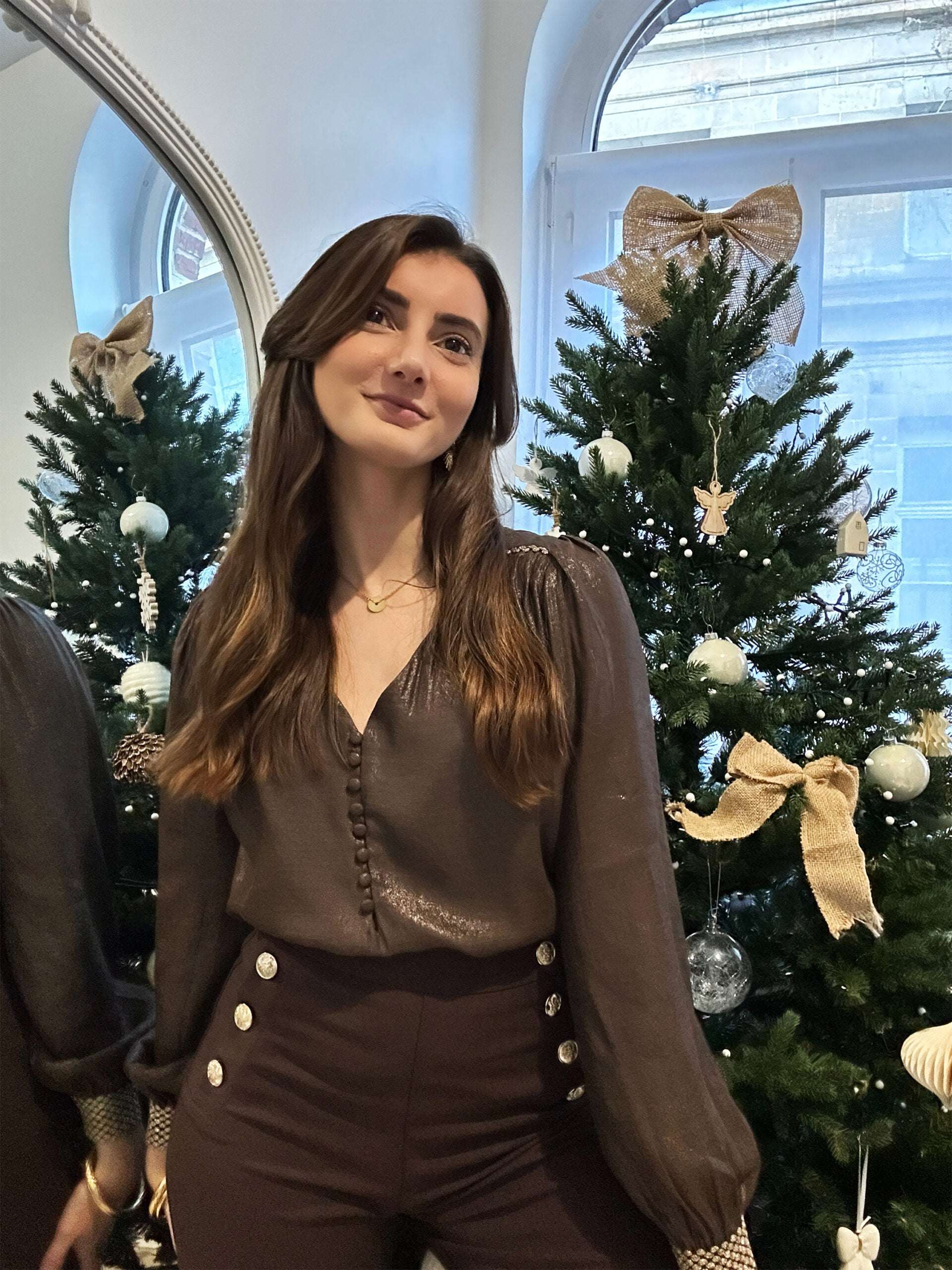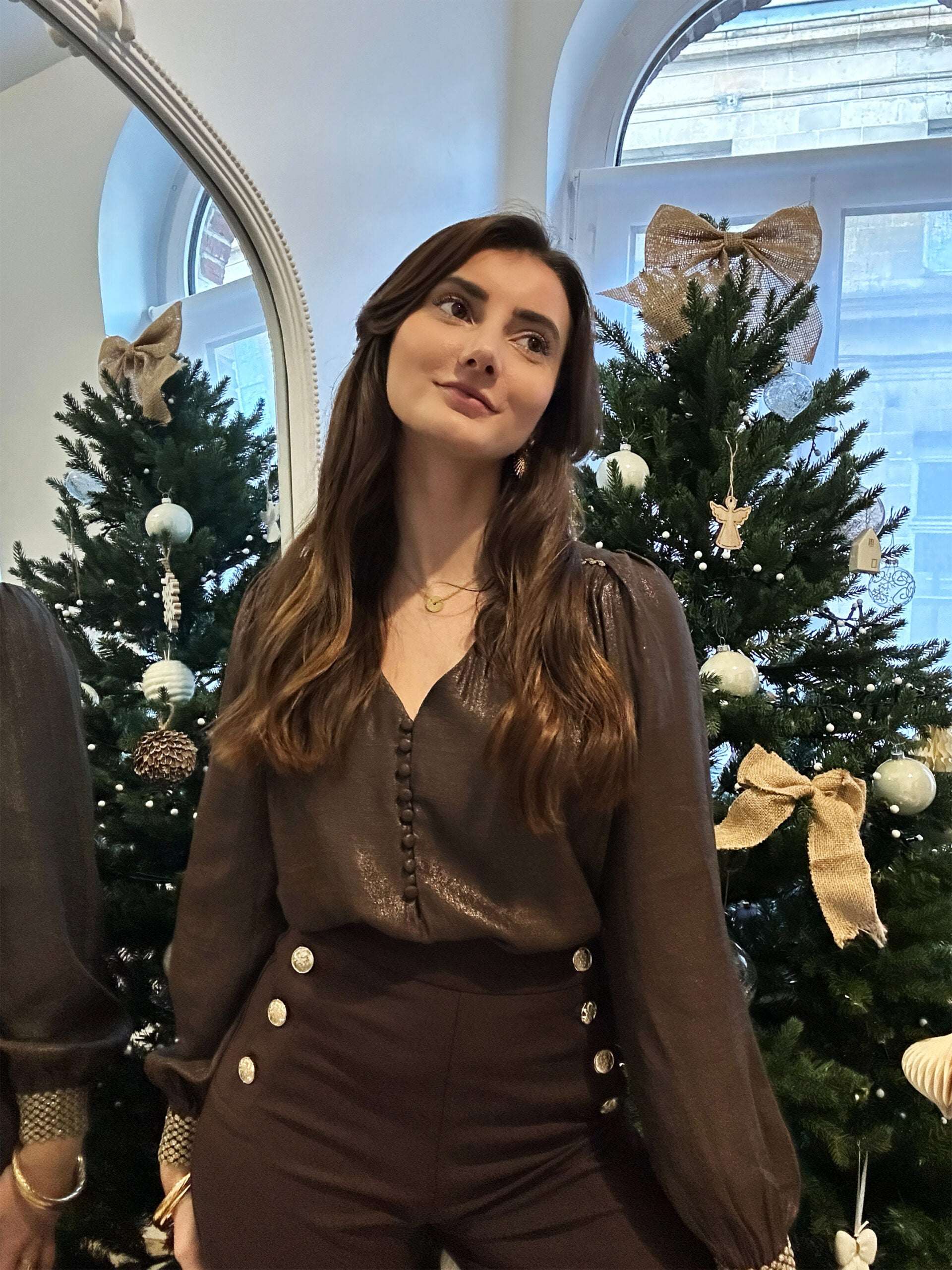 Craquez pour la blouse Mira satinée couleur chocolat ! Son tissu légèrement brillant offre un rendu chic et féminin. Parfaite pour les fêtes, une soirée, un dîner ou pour sublimer une tenue du quotidien.