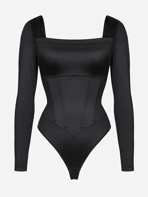 Transformez votre silhouette avec notre bodysuit sculptant à encolure carrée – contrôle du ventre, coussinets amovibles et style moderne !