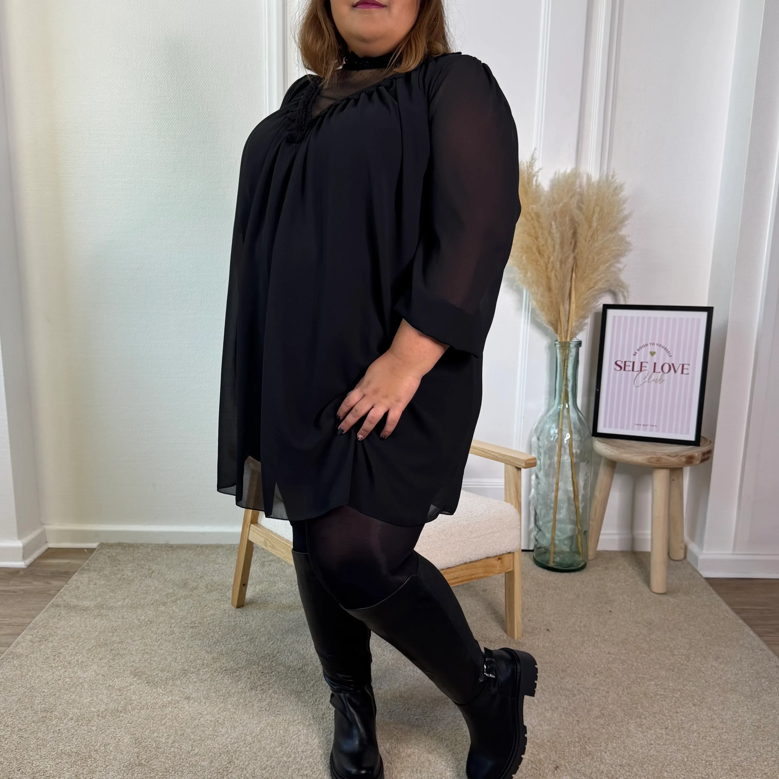 🖤 Adoptez un style rock et moderne avec les bottes Serena ! En cuir noir souple, elles se distinguent par leur boucle latérale et leur semelle crantée à talon bloc pour confort et stabilité ✨. Faciles à enfiler grâce au zip. Déborah (robe pull noire) a un tour de mollet de 48 cm pour une […]