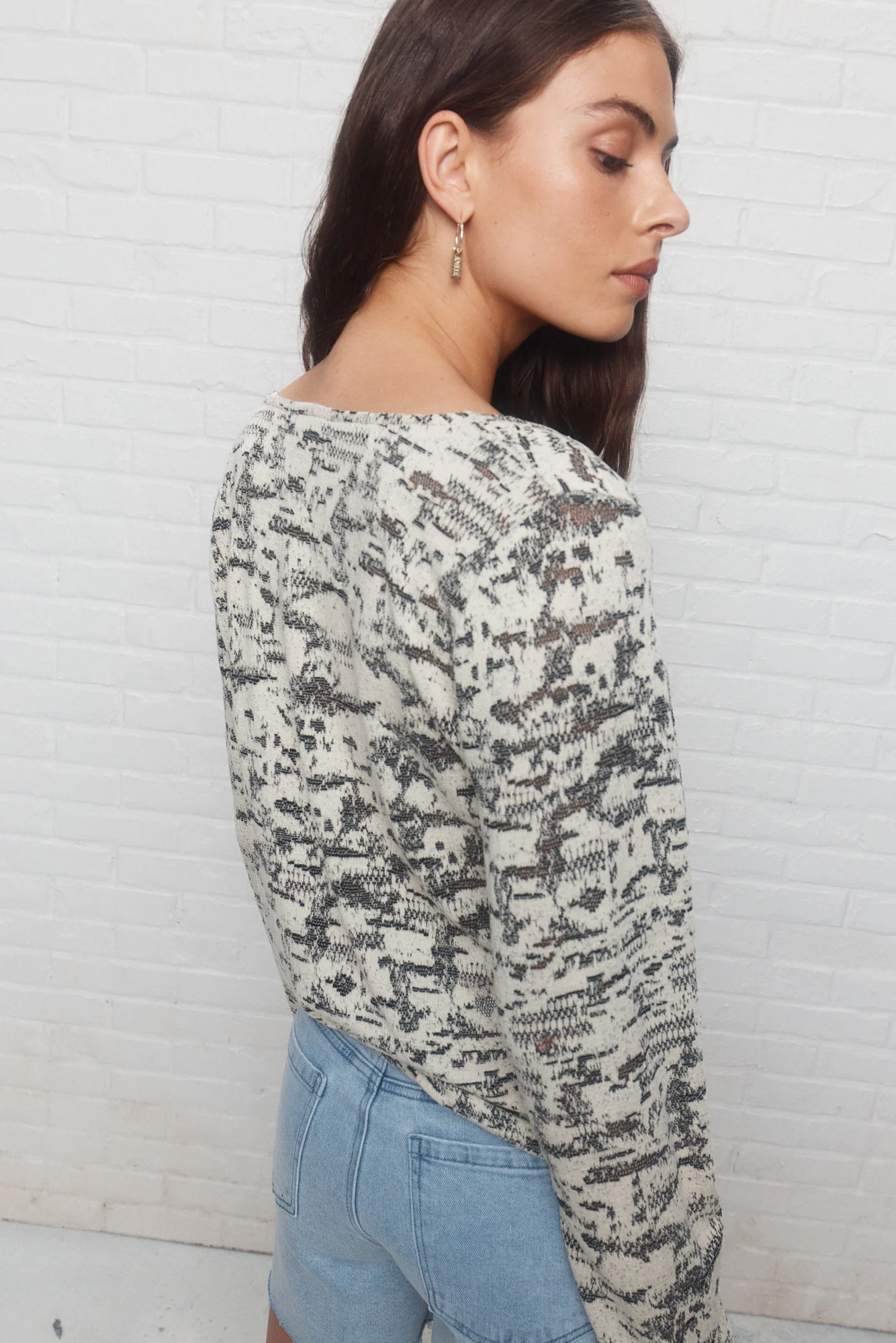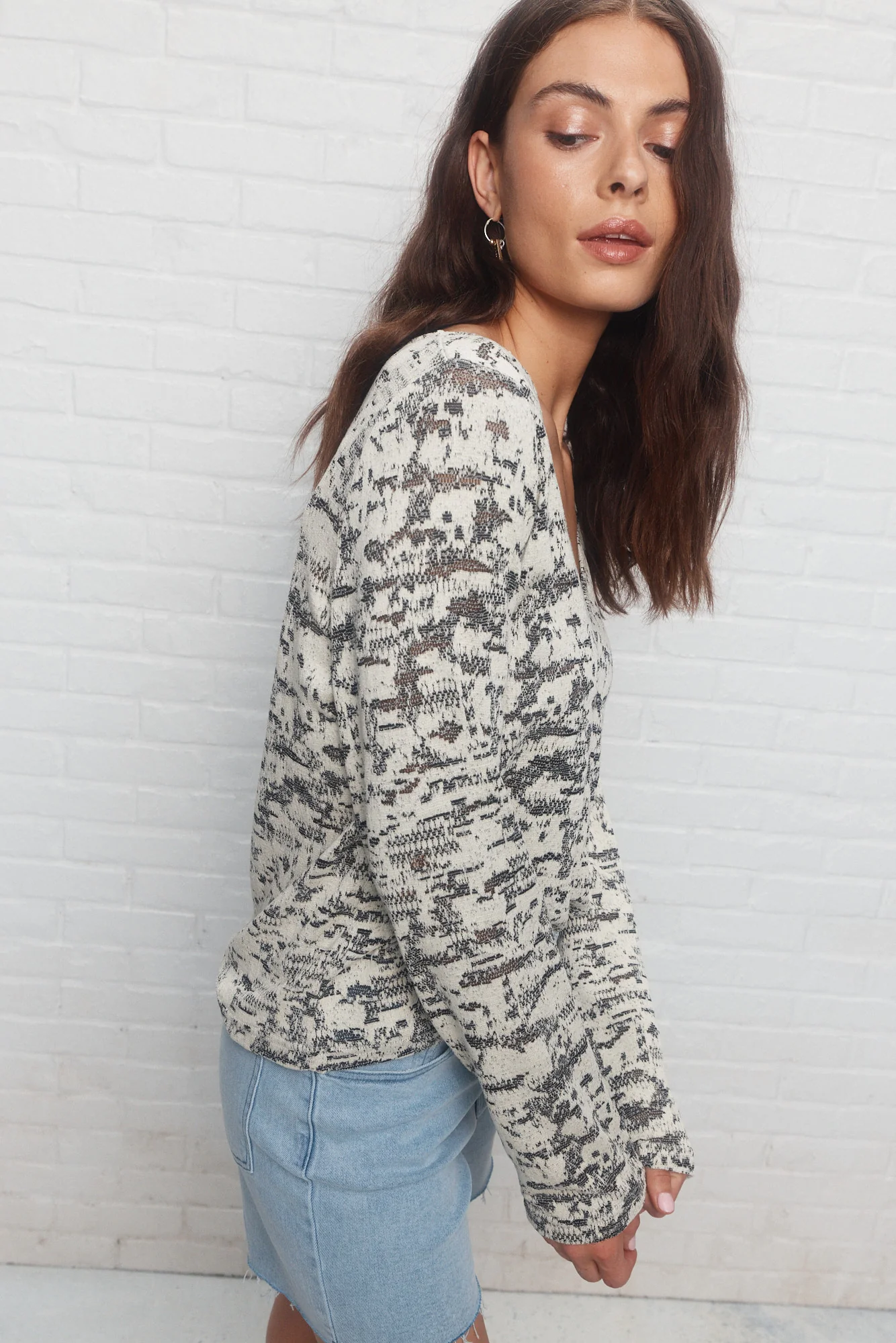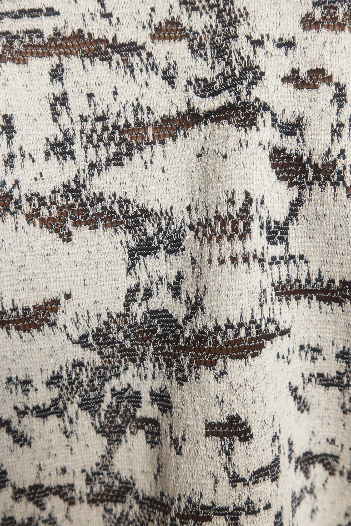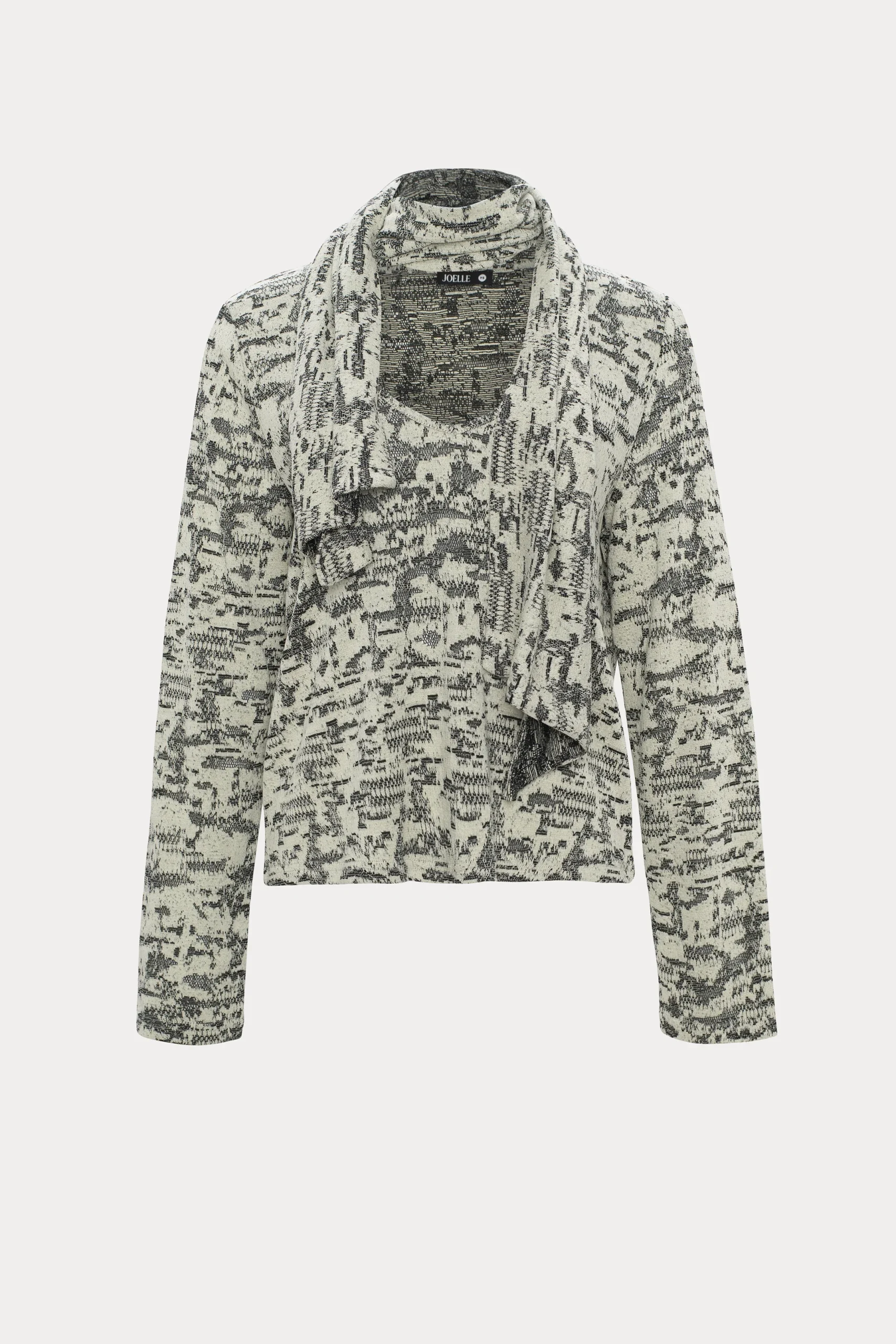 Voici Brouah, le chandail crème à motif et foulard intégré. Son jacquard abstrait et son foulard réversible insufflent une touche unique et artistique, tandis que son col échancré dévoile joliment votre peau.