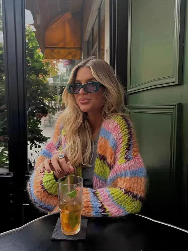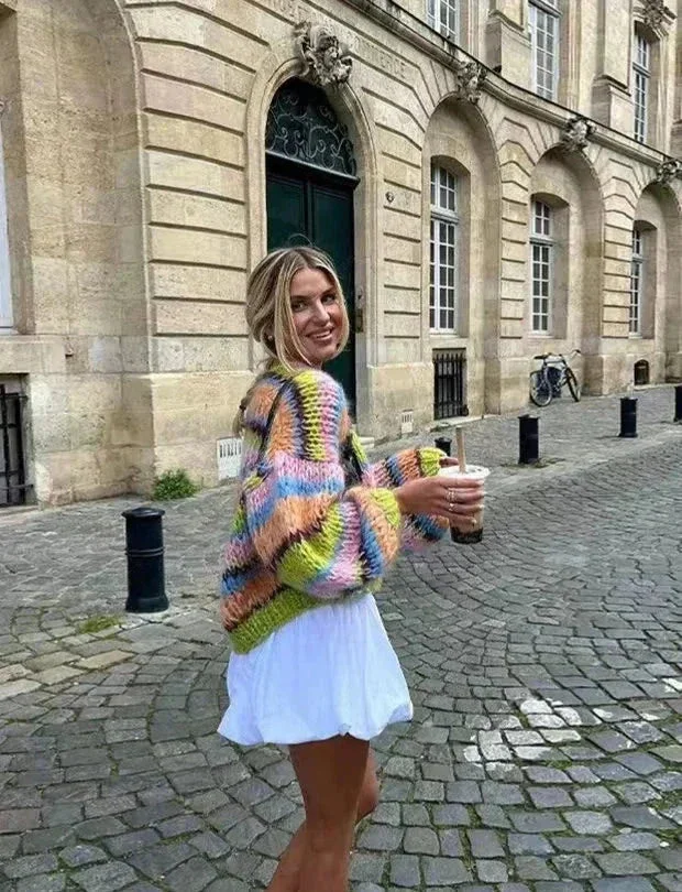 Cardigan femme à rayures colorées manches larges