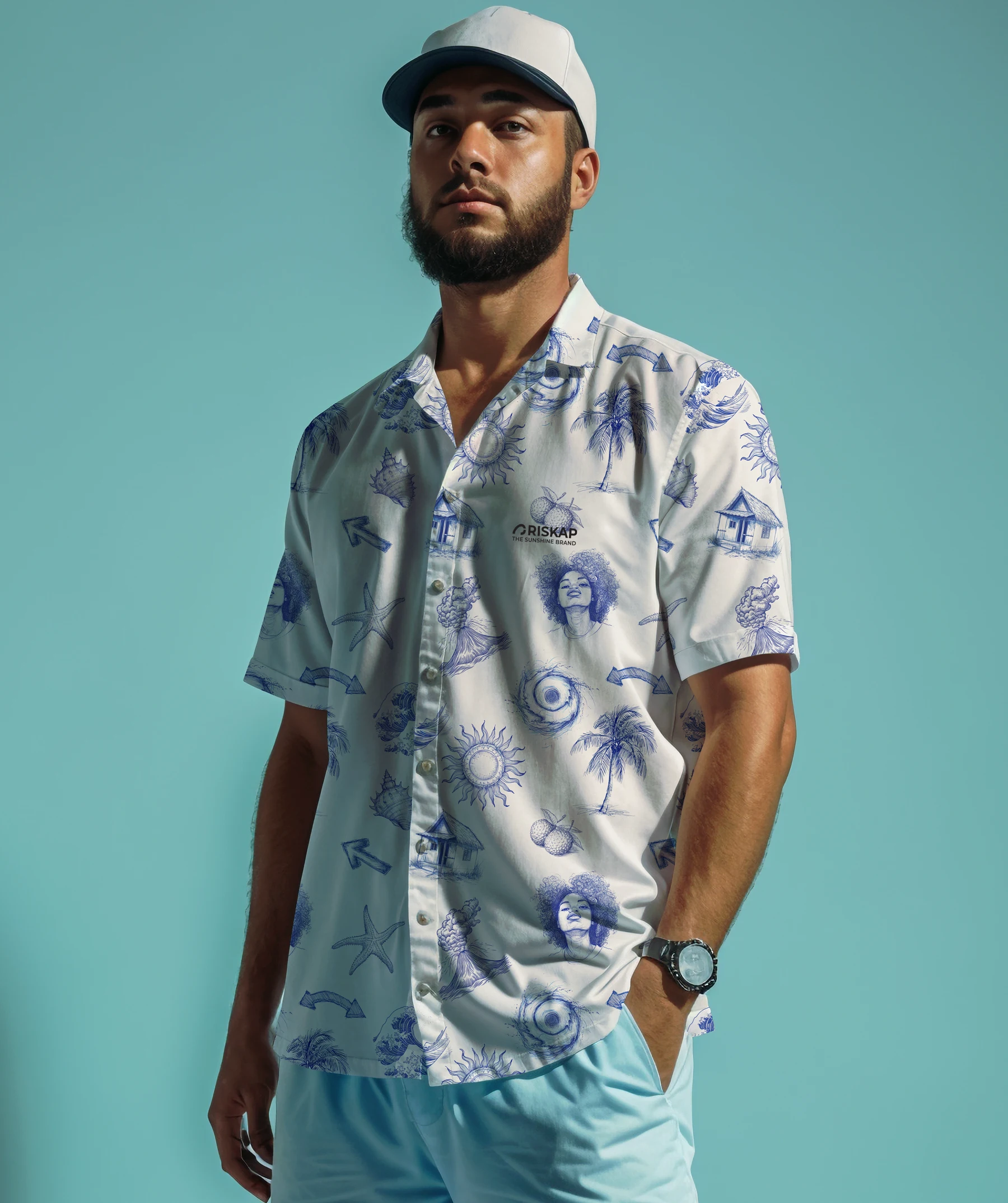 Vous rêvez de partir à l’aventure sous les tropiques ? Avec notre chemise homme éléments tropicaux, vous n’aurez pas besoin de prendre l’avion pour vous sentir dépaysé. Cette chemise unique affiche un design captivant qui mélange des symboles de la culture et de la nature tropicales, comme des maisons typiques, des palmiers, des volcans, des vagues, des cyclones et le soleil. Le tout sur un tissu doux et respirant qui vous garantit un confort optimal.