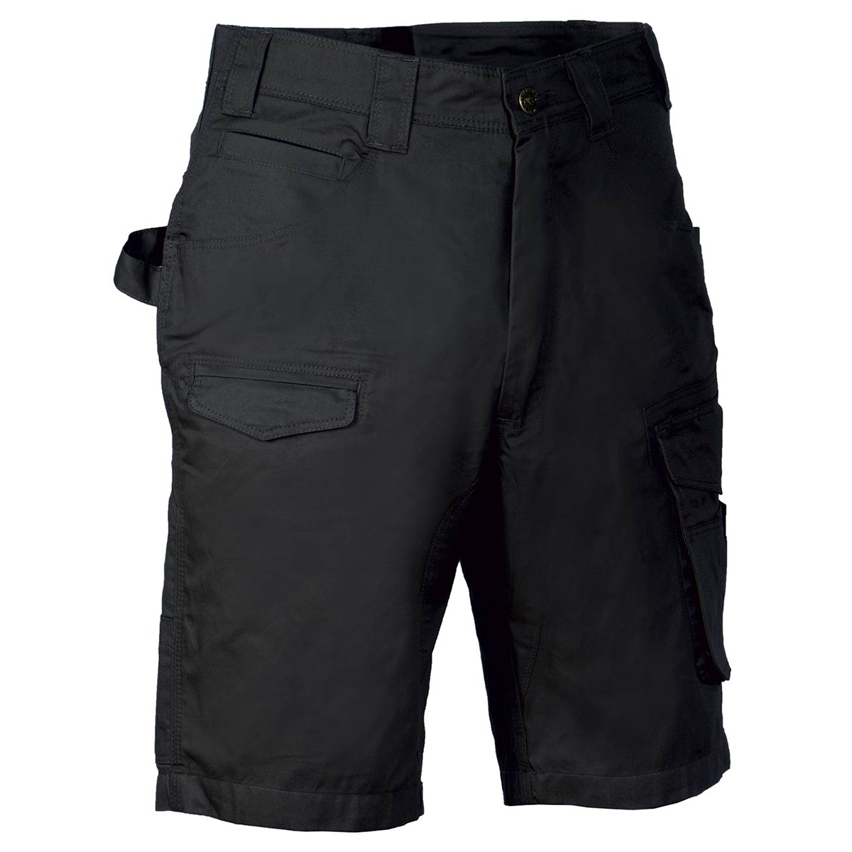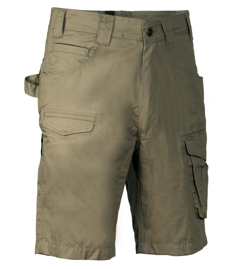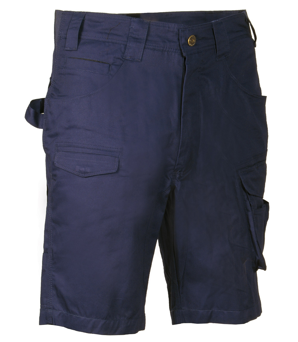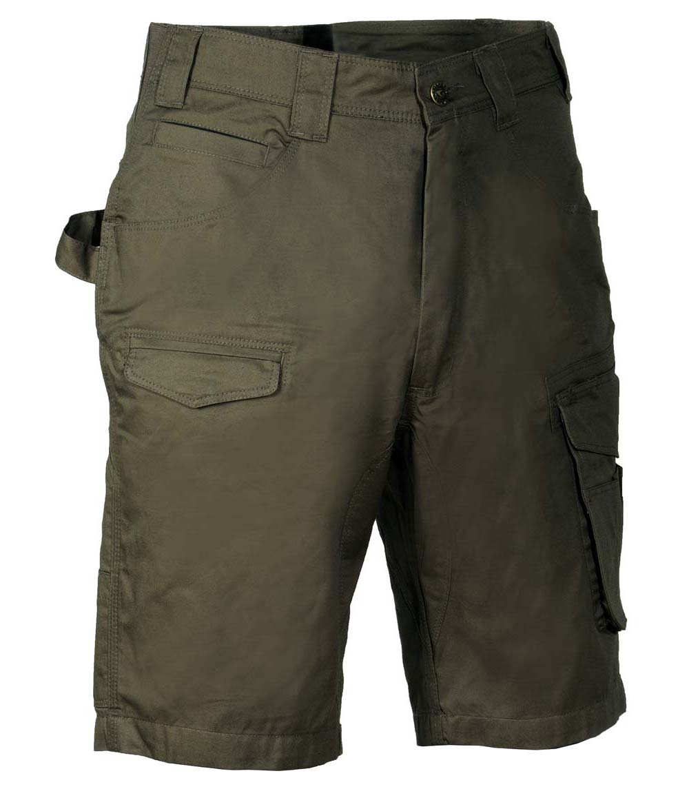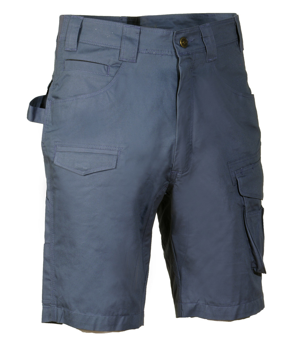 Bermuda de travail avec 2 poches larges à l’avant. Double poche à l’arrière avec patte. Élastique à la taille. Entrejambe renforcé. Petite poche frontale sur la jambe droite. Poche latérale. Poche pour mètre pliant. Poche pour porte-monnaie. Zip YKK® 100% coton.