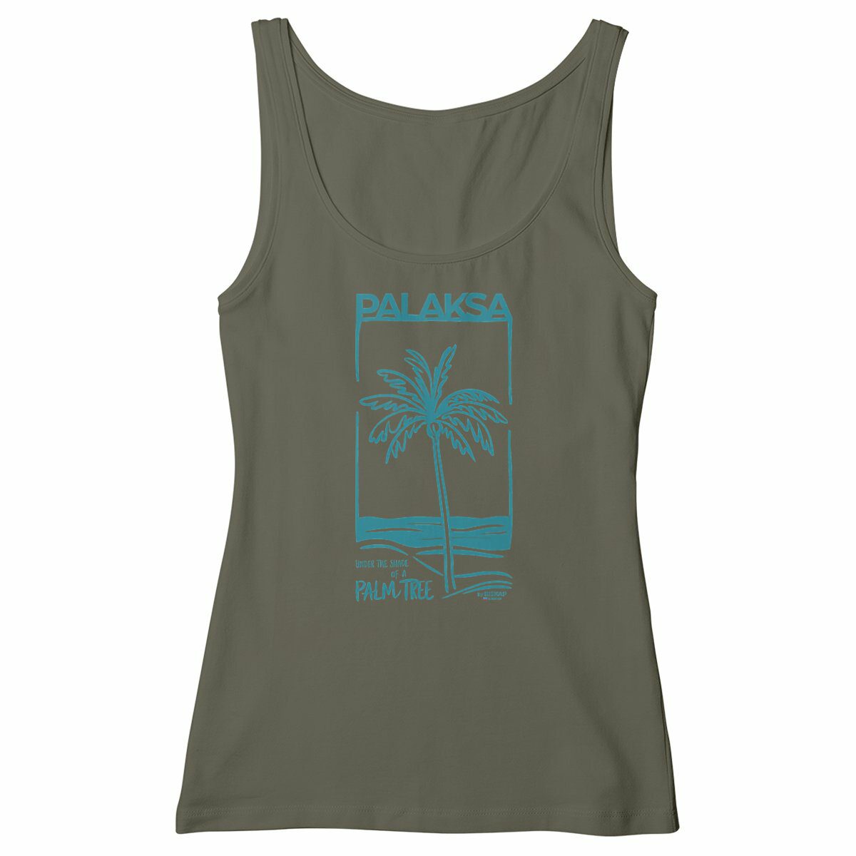 Débardeur Femme – Under The Shade – Léger et en coton bio peigné, ce débardeur au design palmier vous transporte sur l’île de la Réunion. Idéal pour un été ensoleillé ! 🌴☀️