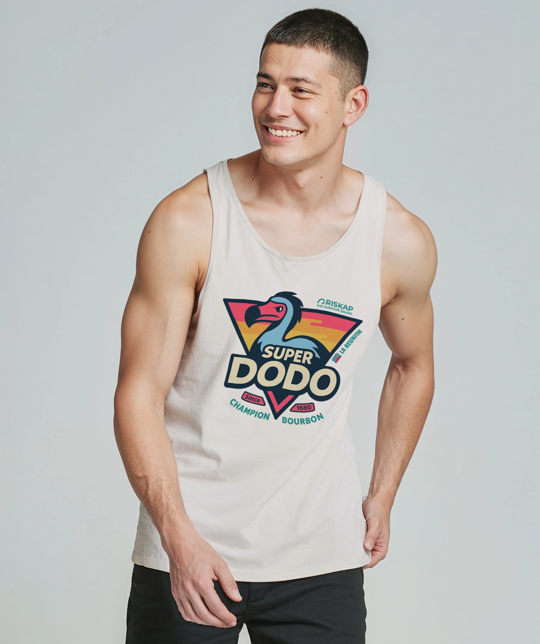 Débardeur Homme – Dodo Heritage – Affichez votre attachement à l’île de la Réunion avec le Débardeur Homme – Dodo Heritage en coton bio premium. Un design inspiré du dodo, une coupe ajustée et un tissu ultra-confortable pour un look unique et responsable !