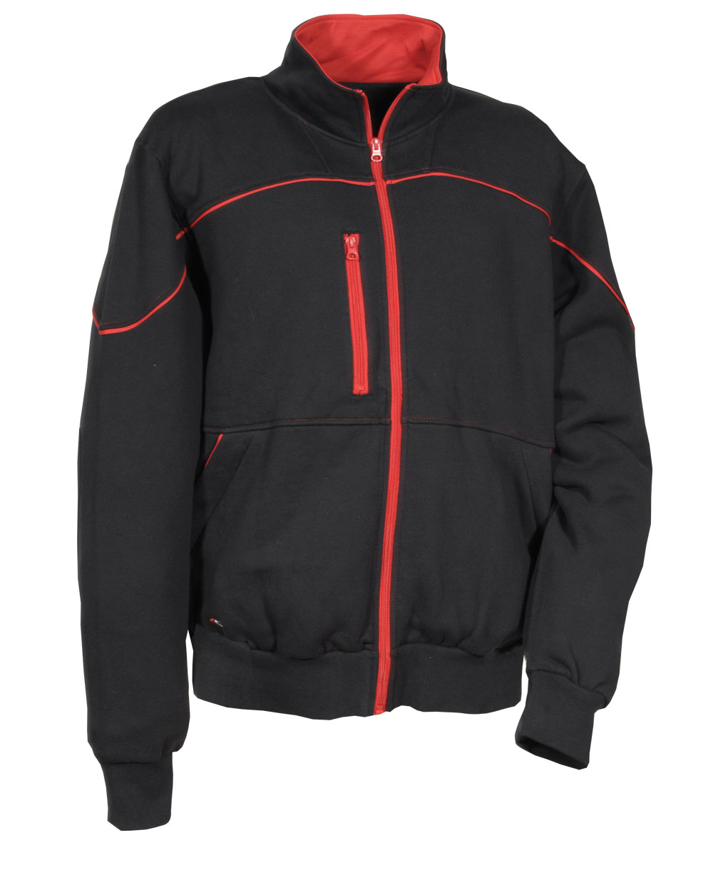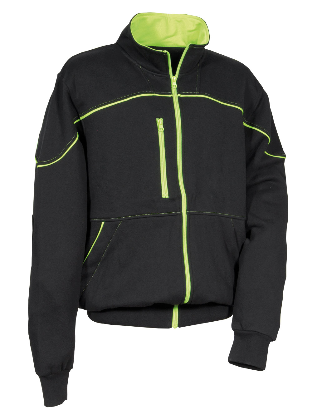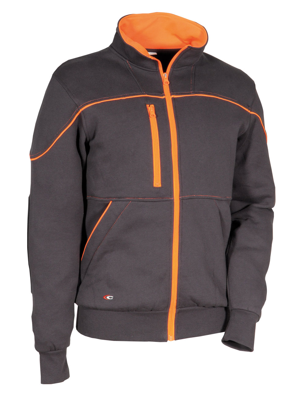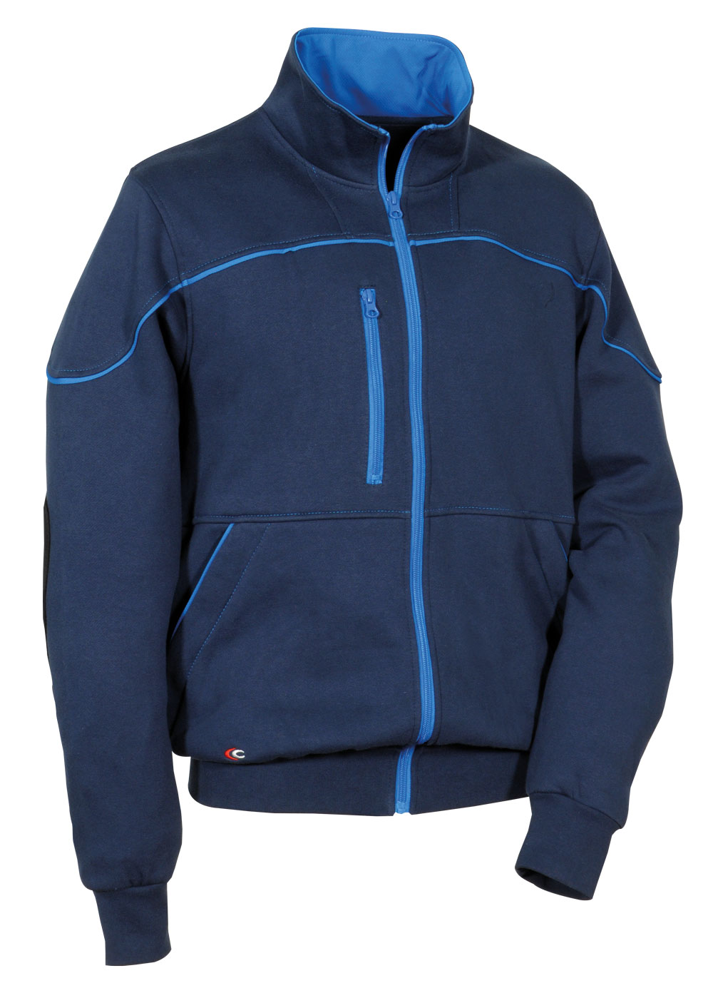 1 poche poitrine. 2 grandes poches dans le bas avec zip. Empiècements aux coudes. Ouverture centrale avec zip. Poignets et ceinture en mille-raies élastique. 100% coton.
