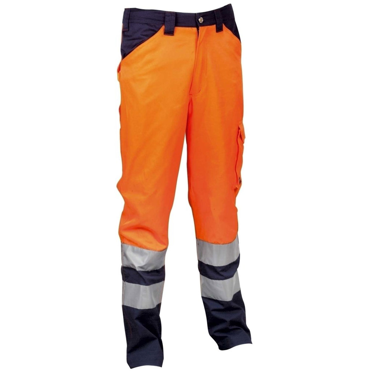 Pantalon haute-visibilité avec élastique à la taille. Passant porte-marteau. Poche à l’arrière et sur le coté avec velcro. Poche pour mètre pliant. 65% polyester – 35% coton.