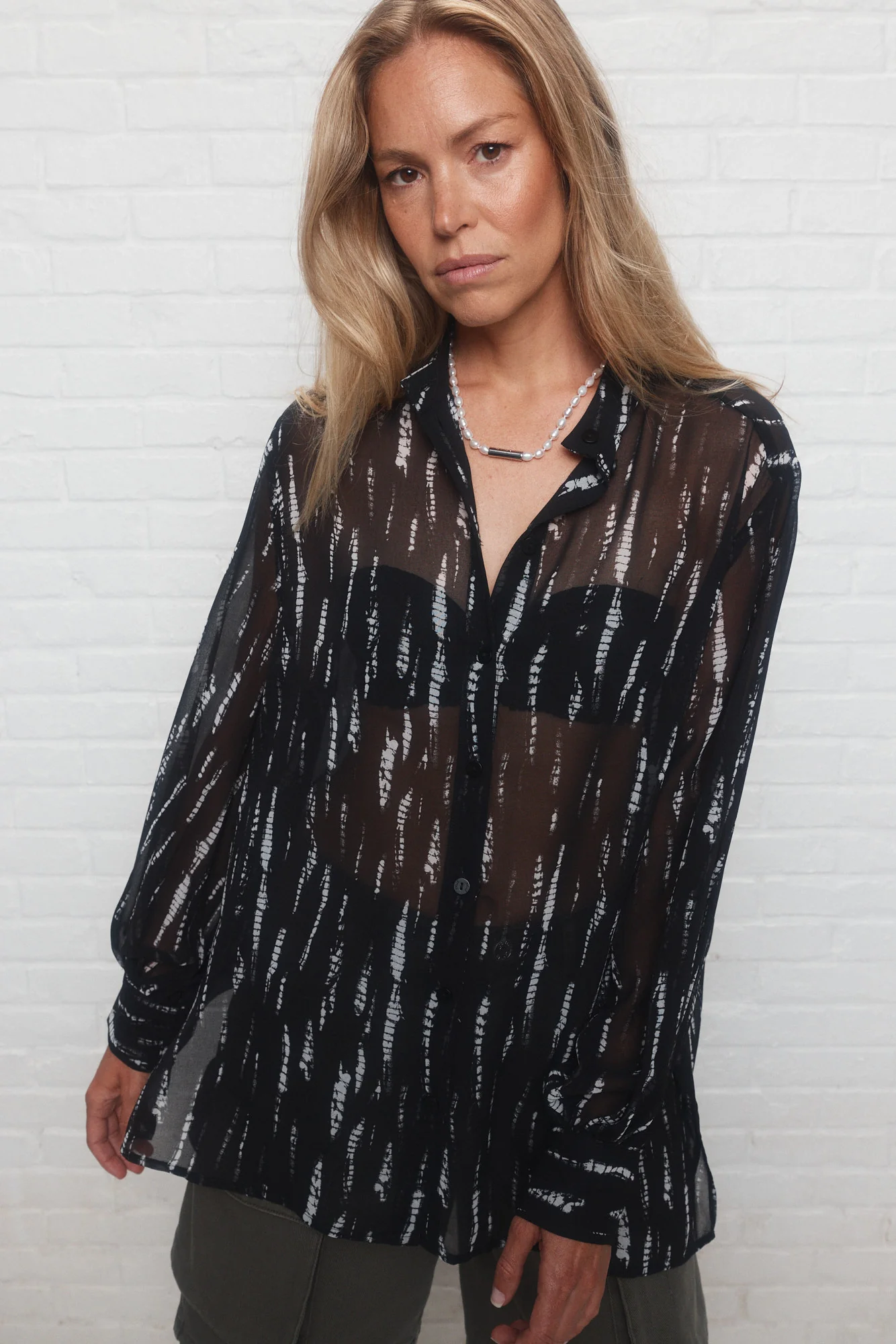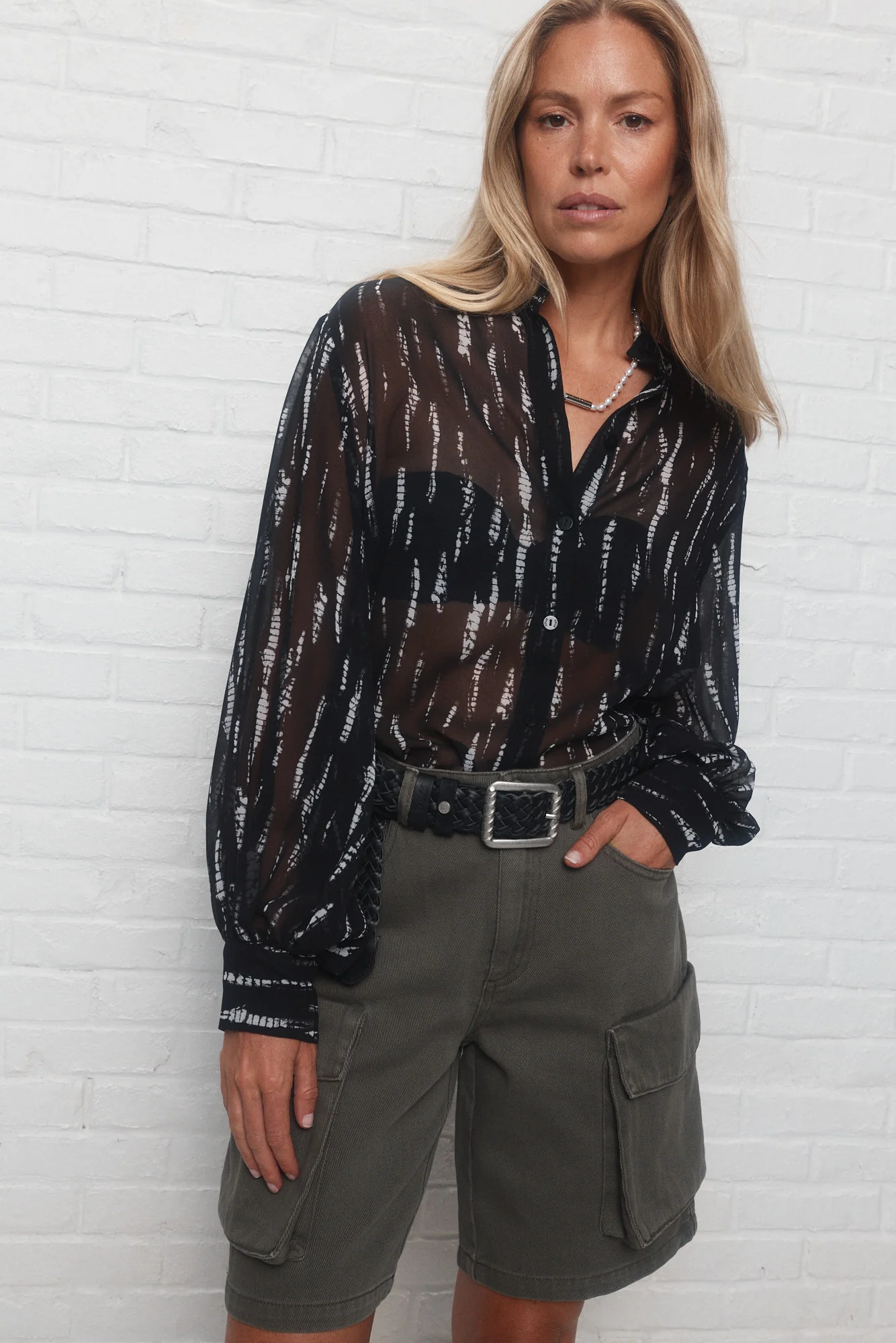 - Le modèle mesure 5’9 1/2 (buste 34, taille 26, hanches 36) et porte la taille S