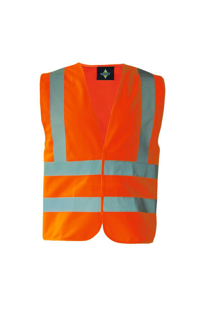 Chasuble approuvé spécification EN ISO20471 2 bandes horizontales et 2 bandes verticales rétro réfléchissantes. Taille ajustable par Velcro®. 100% polyester.