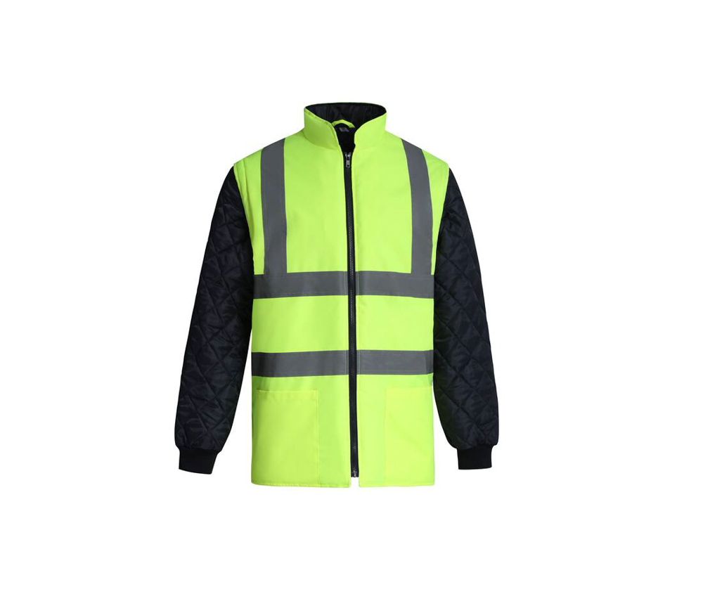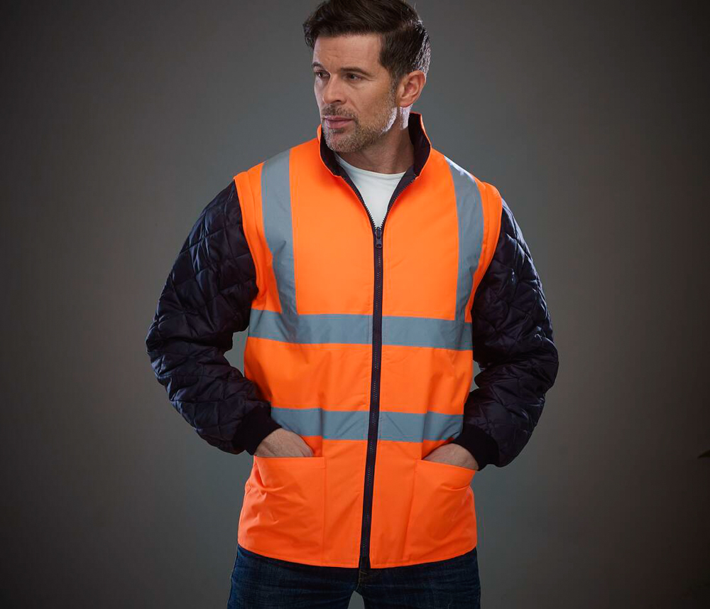 Hi-vis quilted jacket with detachable sleeves