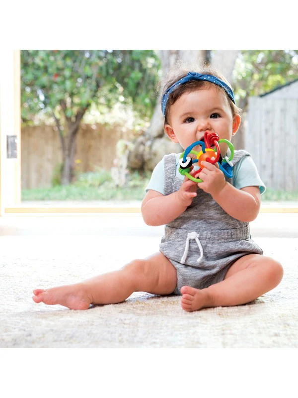 Deze leuke rammelaar bevat zachte onderdelen om op te bijten die speciaal zijn ontworpen voor het gevoelige tandvlees van je kindje!
