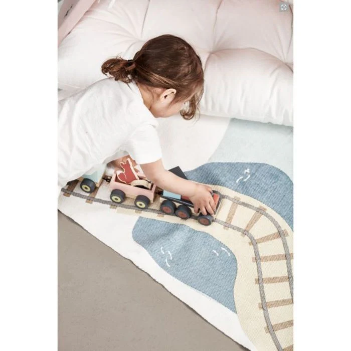 Transformeer de kinderkamer met het betoverende Kids Concept Speelkleed! Dit stijlvolle speelkleed is niet alleen een musthave voor warme voetjes, maar biedt ook een speelse achtergrond voor eindeloos plezier met treintjes, dieren en city stad.