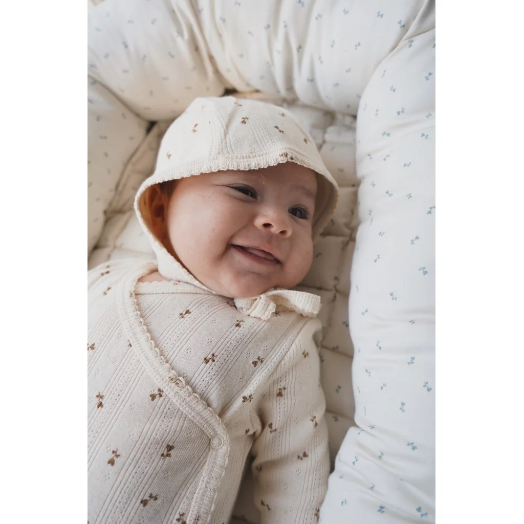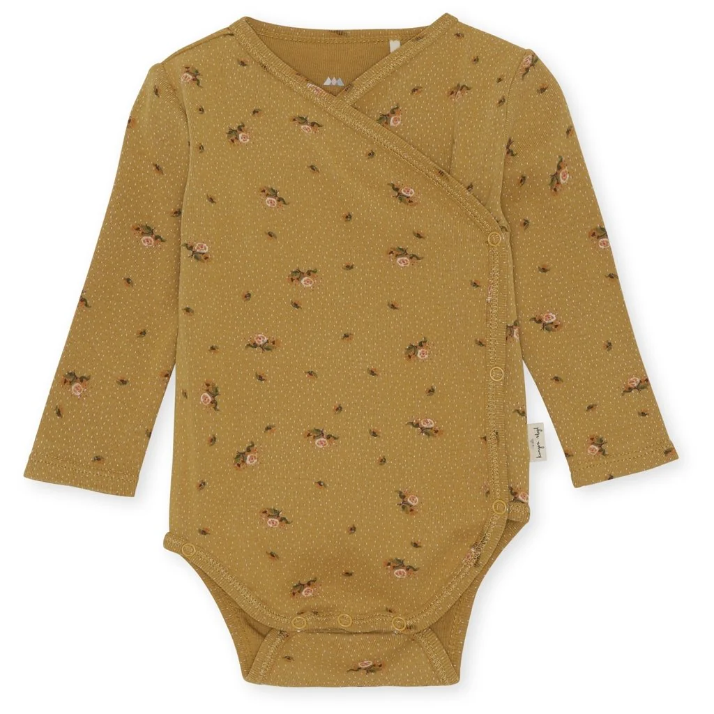 Mini new born romper met overslag. Schattig en eenvoudig en gemakkelijk te dragen. Met een overslag sluiting hoef je het rompertje niet over het hoofdje van je baby aan te trekken. Hoe handig is dat! Gemaakt van biologisch katoen en voelt daardoor heerlijk zacht aan tegen de tere baby huidje.