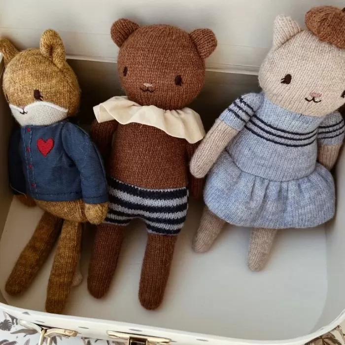 Deze kleine, gebreide vriendjes gemaakt van 80% wol en 20% nylon, zijn perfect voor kleine handjes om vast te houden en mee te spelen. Voeg een vleugje speelsheid toe aan de speelgoedcollectie van je kind met deze charmante mascottes.