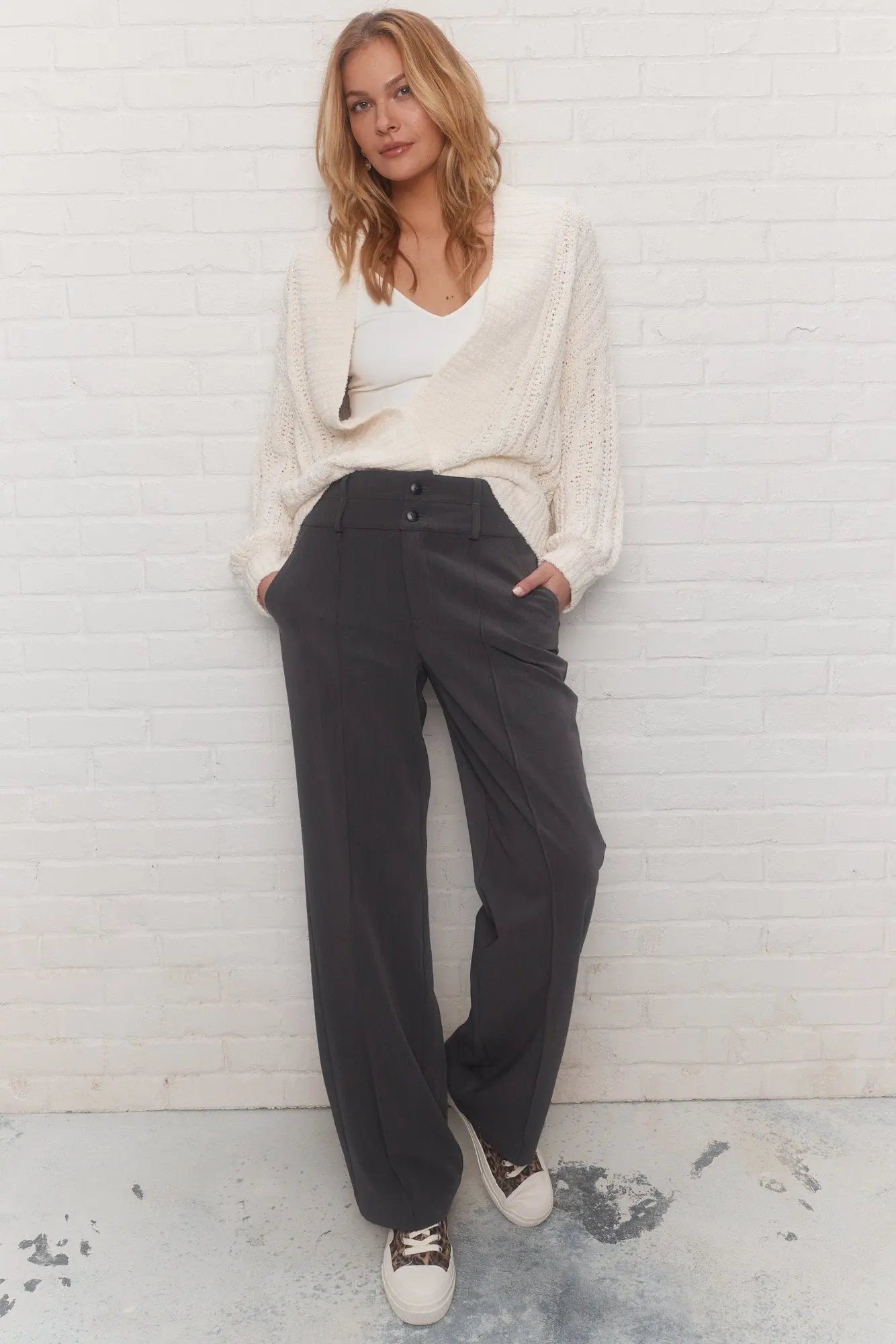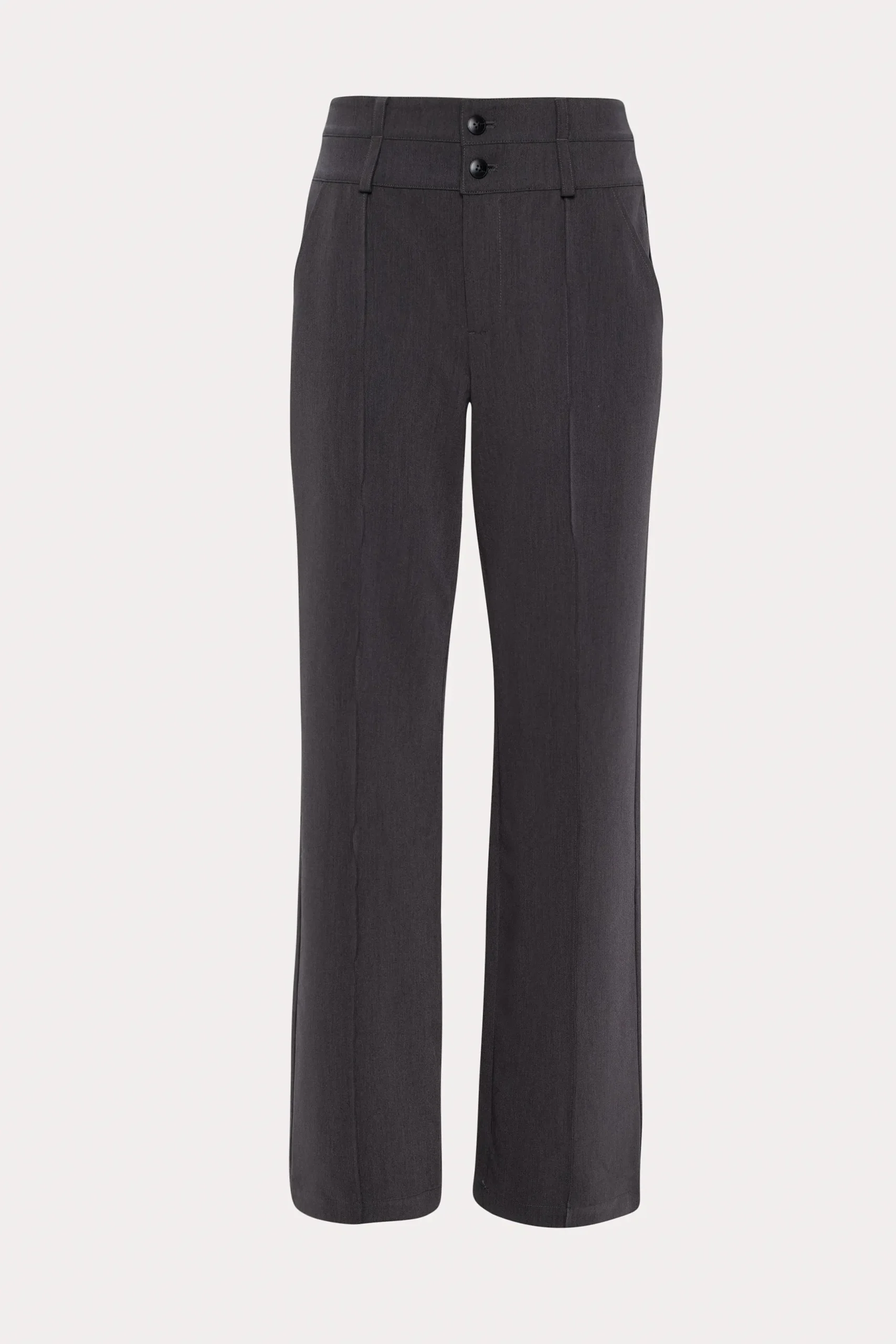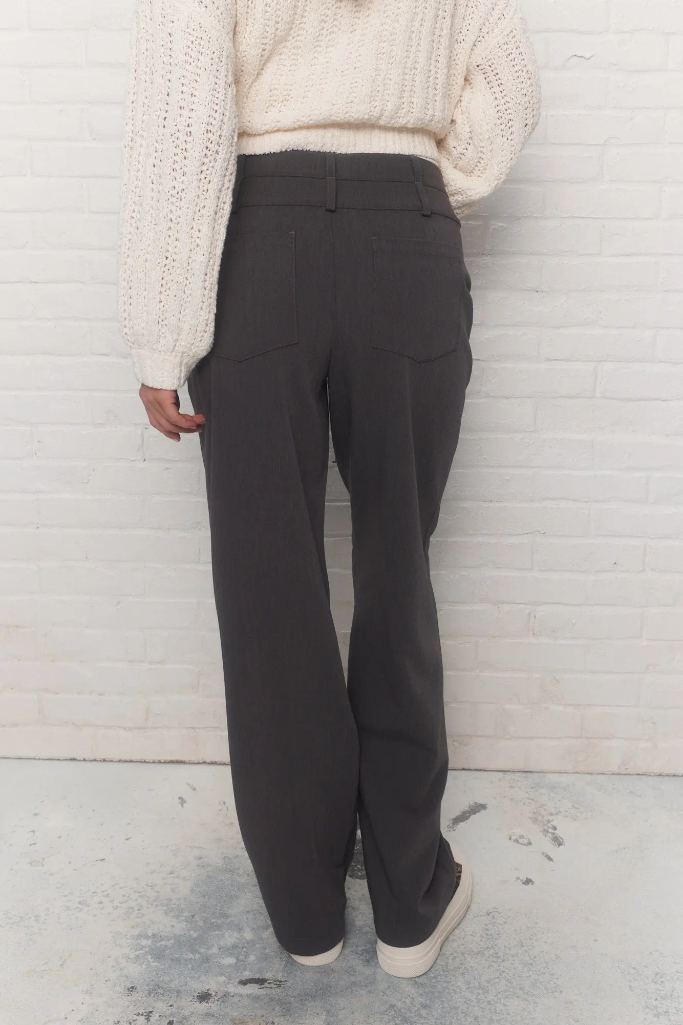 - Taille moyenne, double bande de taille avec passants pour insérer une ceinture et braguette avec deux boutons