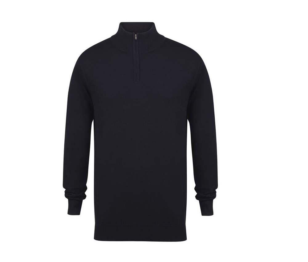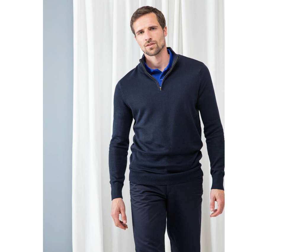 Pull col zippé. Jauge 12. Ourlet, col et poignets en bords côte 1×1. Col zippé. Zip en métal. 50% coton/50% acrylique.