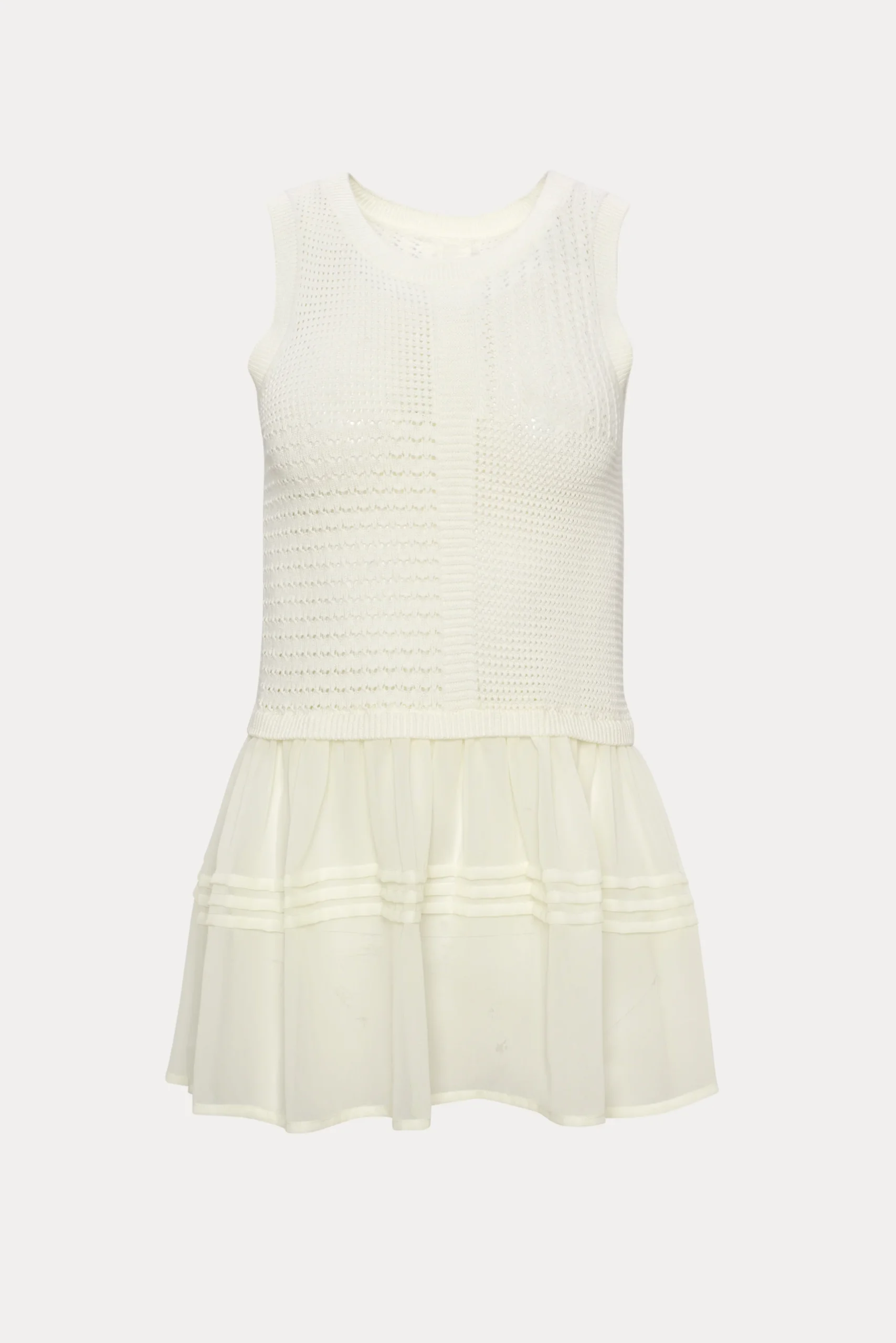 La camisole crème en tricot Michaela est à la fois unique avec son mélange de tissus, et romantique avec son volant à l’ourlet, parfait pour avantager la taille. Classique, sa teinte est polyvalente et lumineuse.