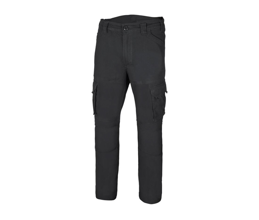 Fermeture à bouton avec braguette zippée Tissu arrière renforcé. Renfort sur les genoux. Taille élastiquée sur les côtés. Ceinture plus haute à l’arrière. Triple couture de sécurité. 8 poches. 97% coton/3% élasthanne.
