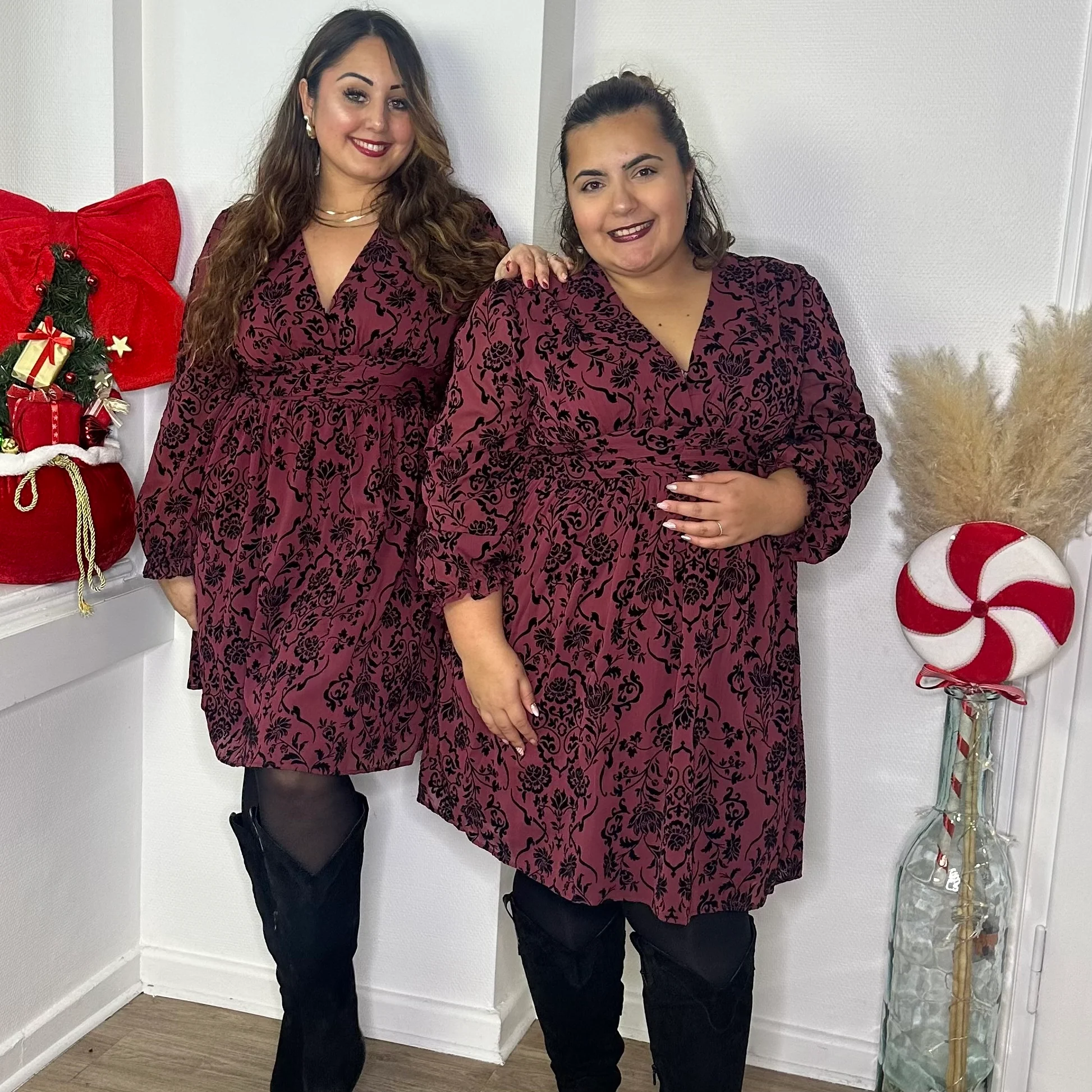 Laissez-vous charmer par cette magnifique robe bordeaux brodée, féminine et raffinée 🌸❤️. Son col V met en valeur votre décolleté, tandis que sa coupe cintrée à la taille sublime votre silhouette en douceur. Dotée d’une doublure. Olivera porte la taille XL – Lauryn porte la taille 3XL Mesures approximatives à plat pour une 3XL: Aisselle […]