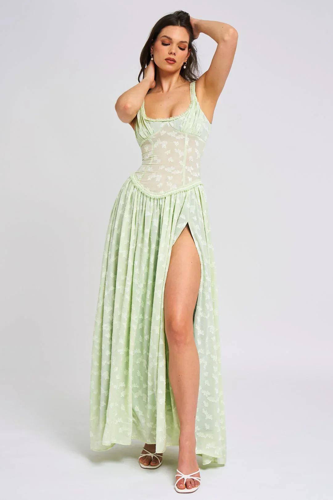 - Sensualité saisissante – Bretelles fines, fente sexy.