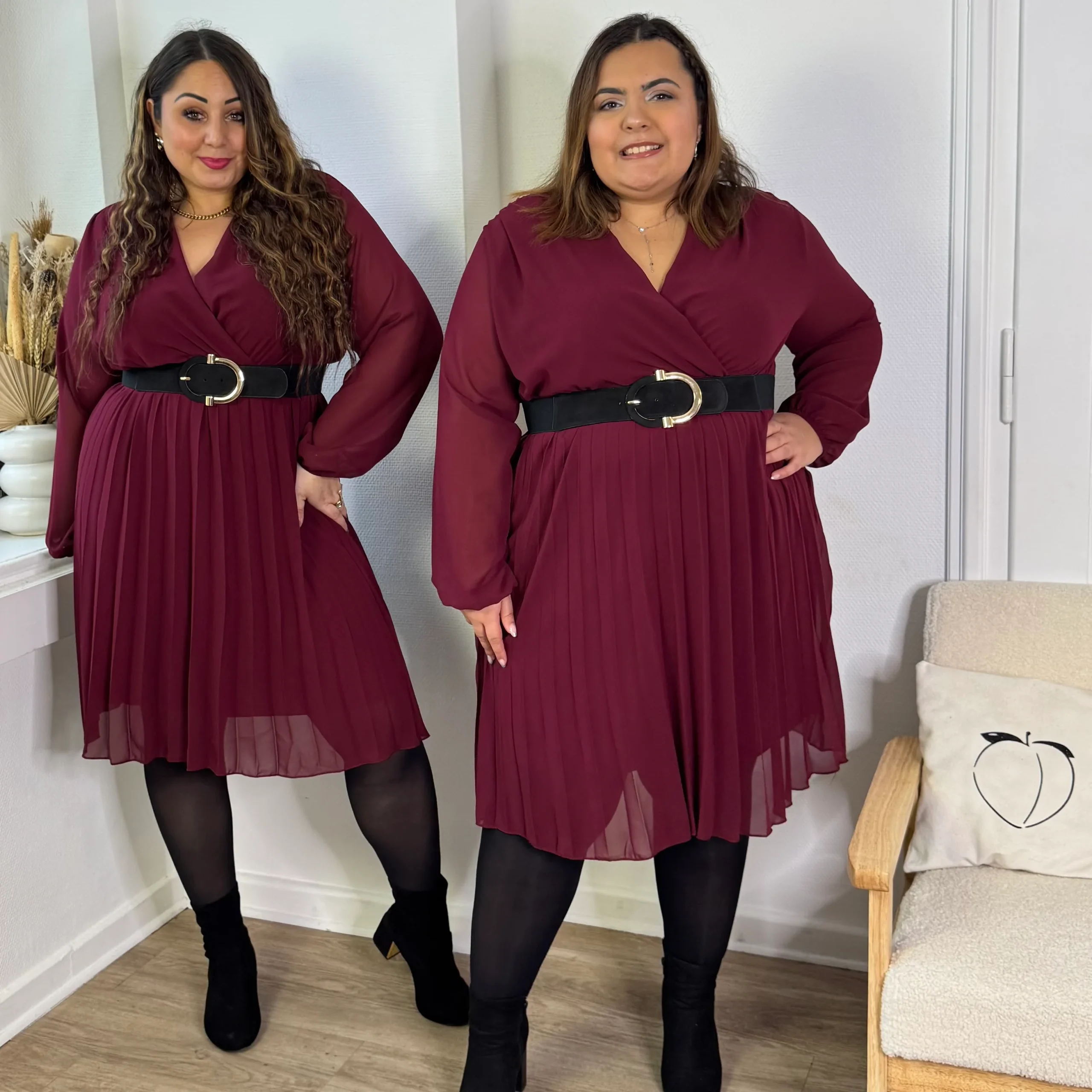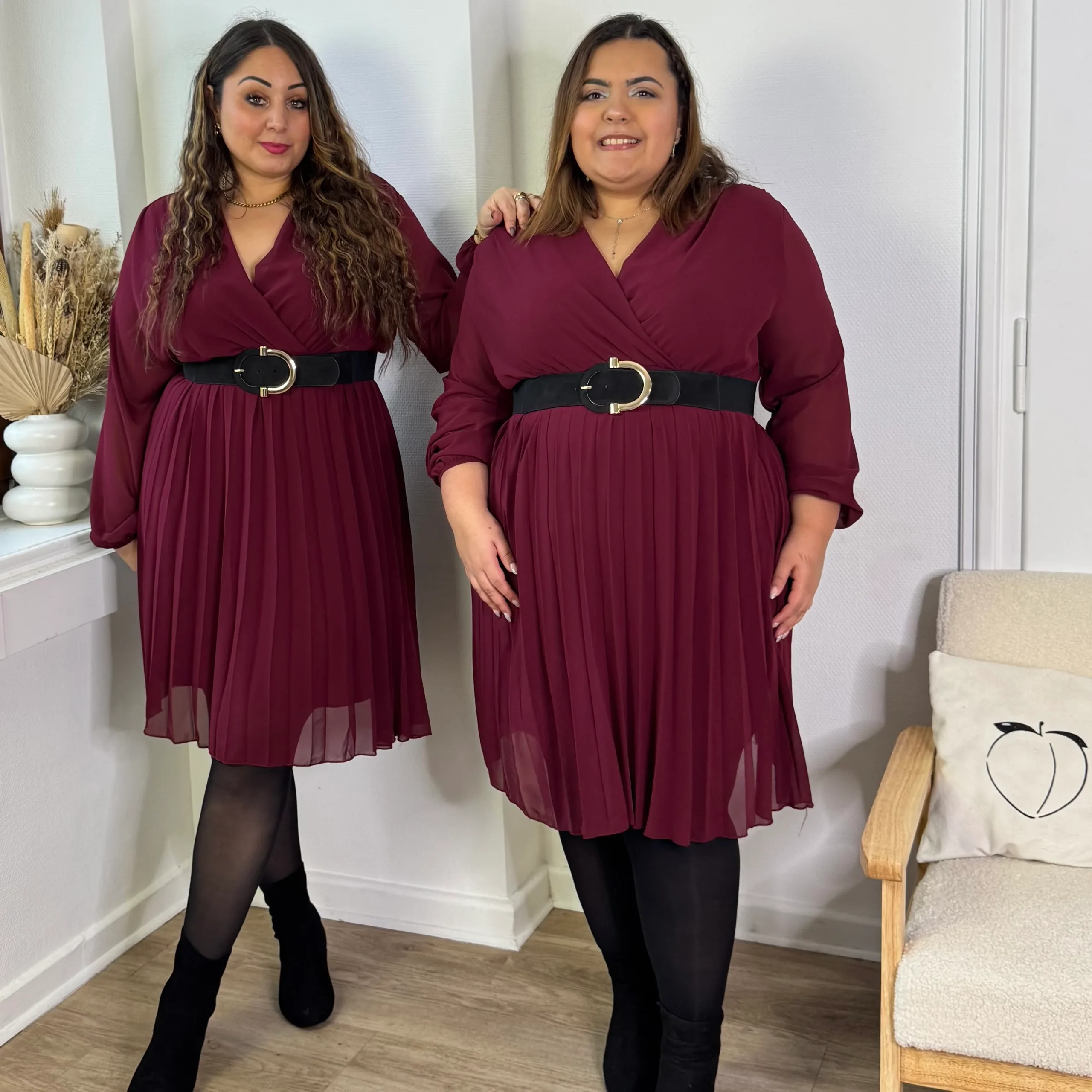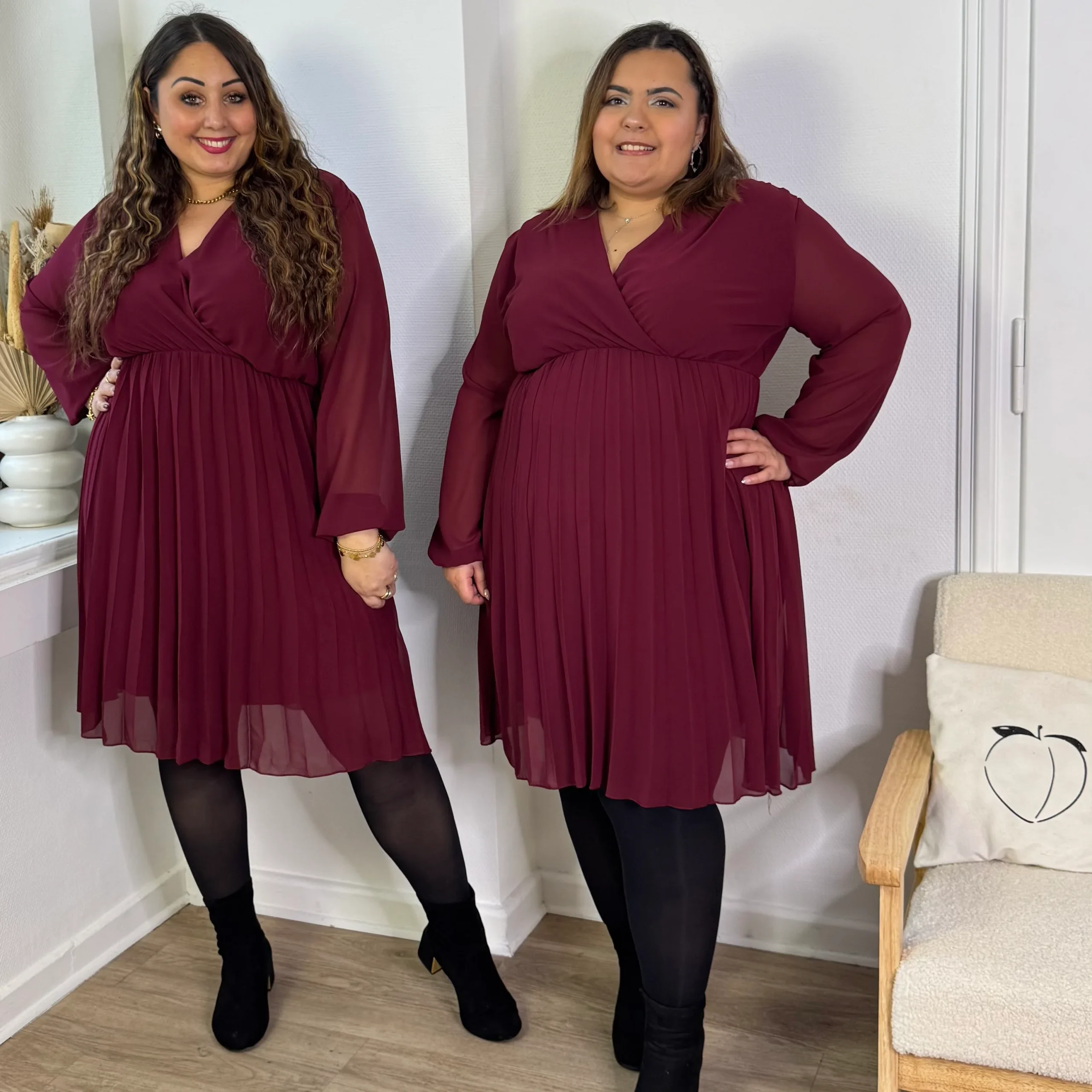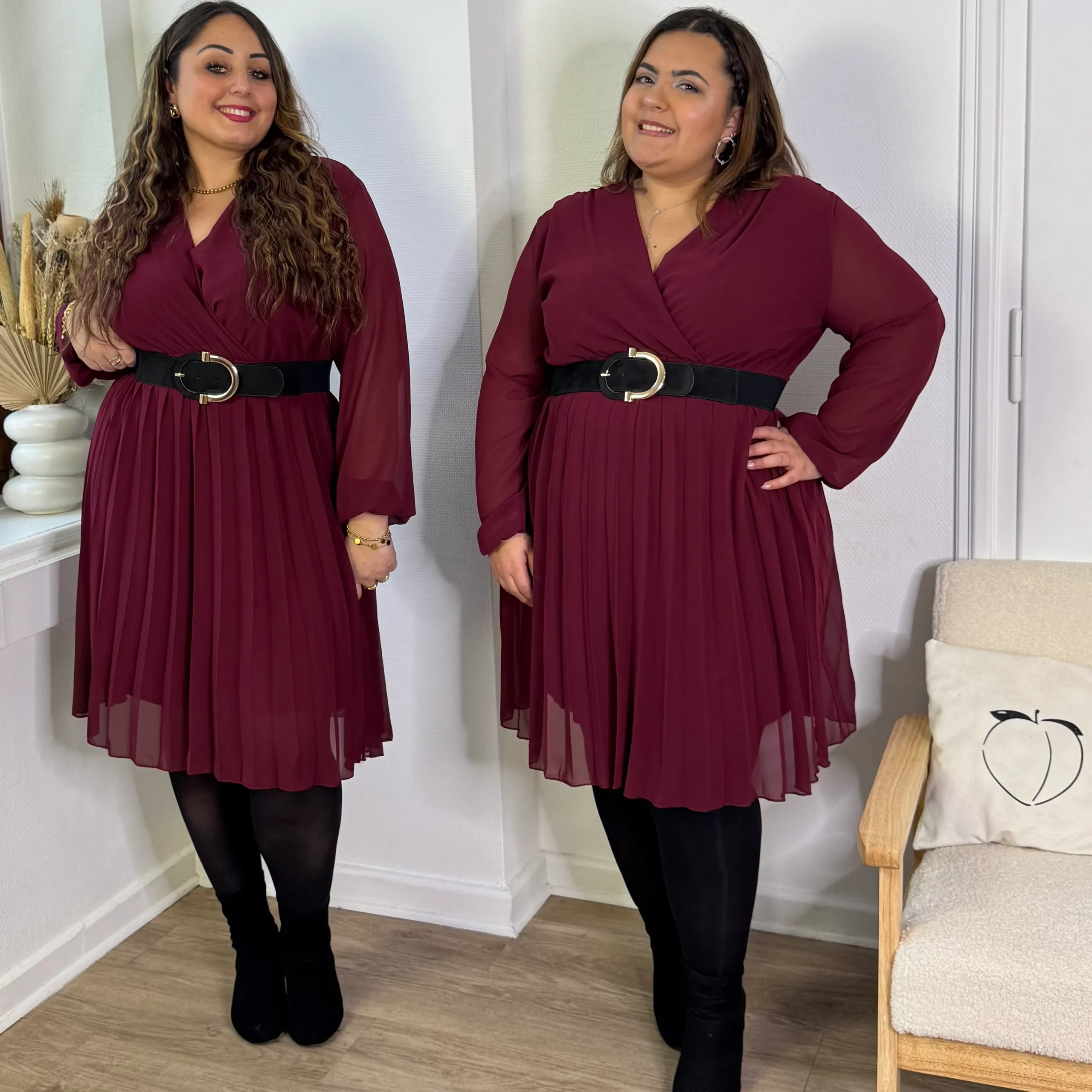 Élégante et féminine, cette robe plissée bordeaux séduit par son col V flatteur et sa coupe raffinée ❤️✨.