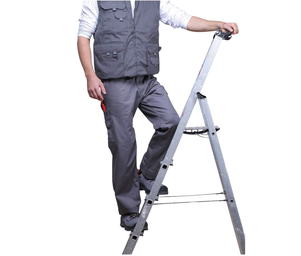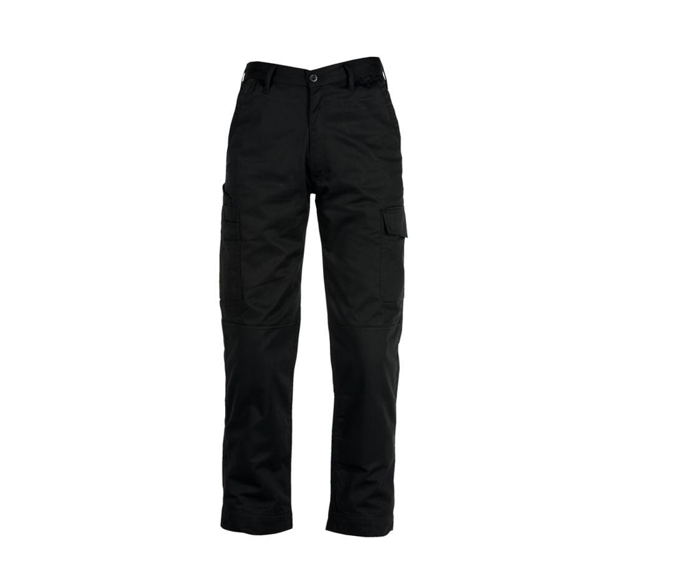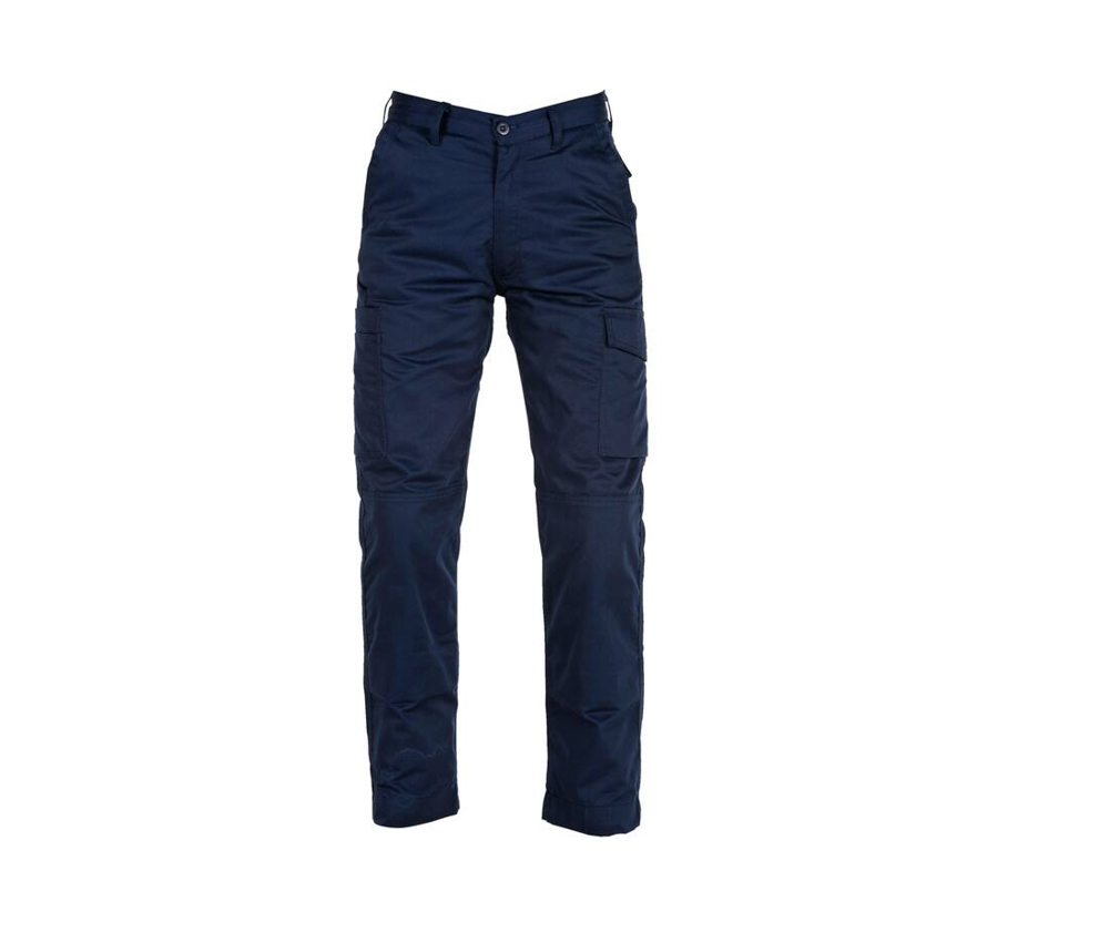 Pantalon de travail. Fermeture Éclair® et bouton. Passage pour ceinture. Douze poches extérieures : 3 poches latérales (une avec zip), 6 poches côtés (2 Velcro®, 2 poches stylos, poche téléphone), 3 poches arrière (une avec rabat et une avec zip). Logo Pen Duick sur poche arrière. Longueur des jambes ajustables (ourlet à rallonge). Taille réglable par élastique. 65% polyester/35% coton.