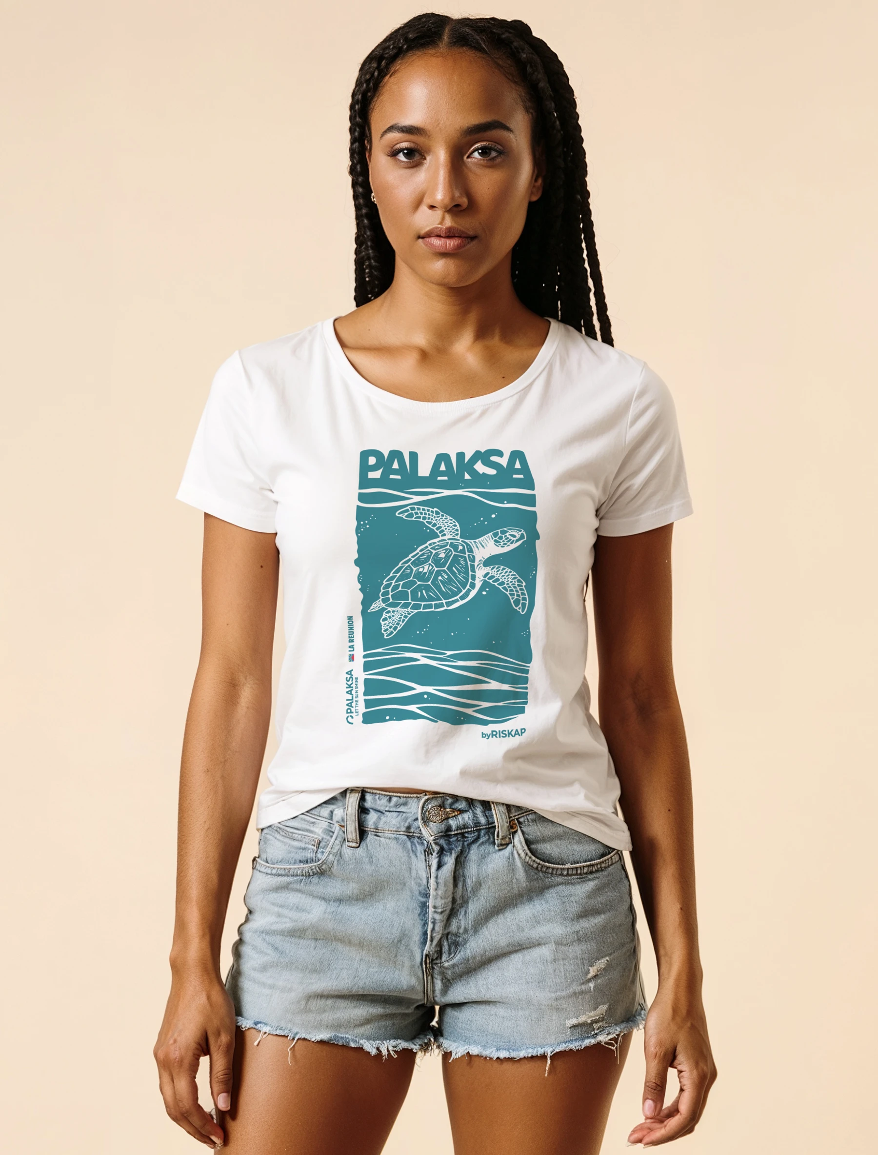 T-shirt Femme Léger – Turtle – Découvrez notre T-shirt femme au design unique de tortue, inspiré par l’ile de la Réunion. Confectionné en coton bio premium, il allie confort et style pour toutes les occasions.
