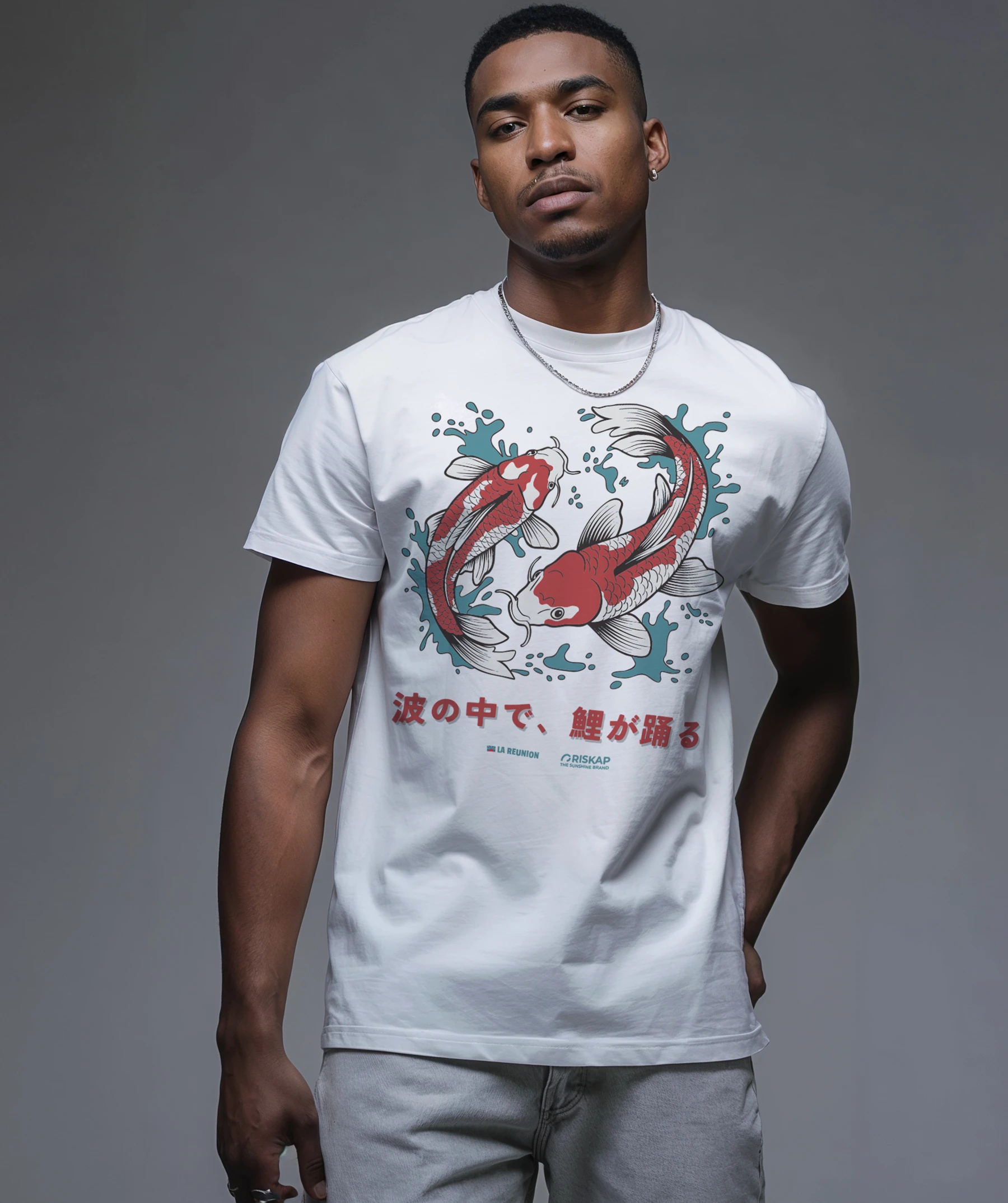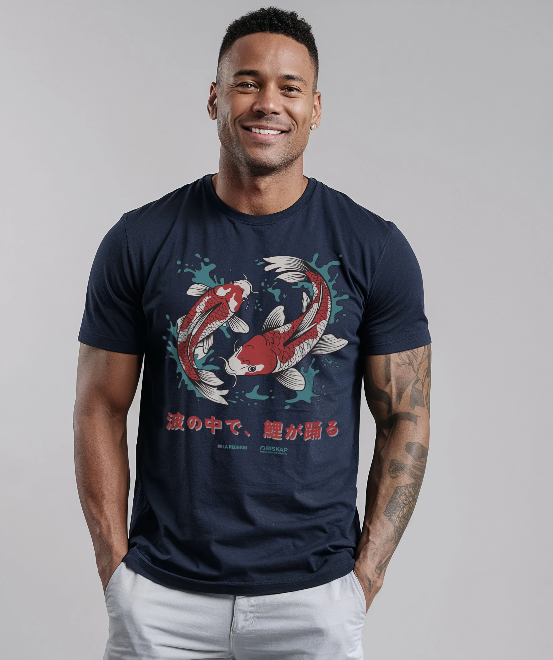 T-shirt Homme – Carpe Koï. Plongez dans la dualité élégante du yin yang avec notre T-shirt orné de carpes koï, où l’art ancestral et le design moderne se rencontrent. Ce T-shirt bio capte l’essence du mouvement et de l’harmonie, parfait pour ceux qui cherchent à allier mode et philosophie.