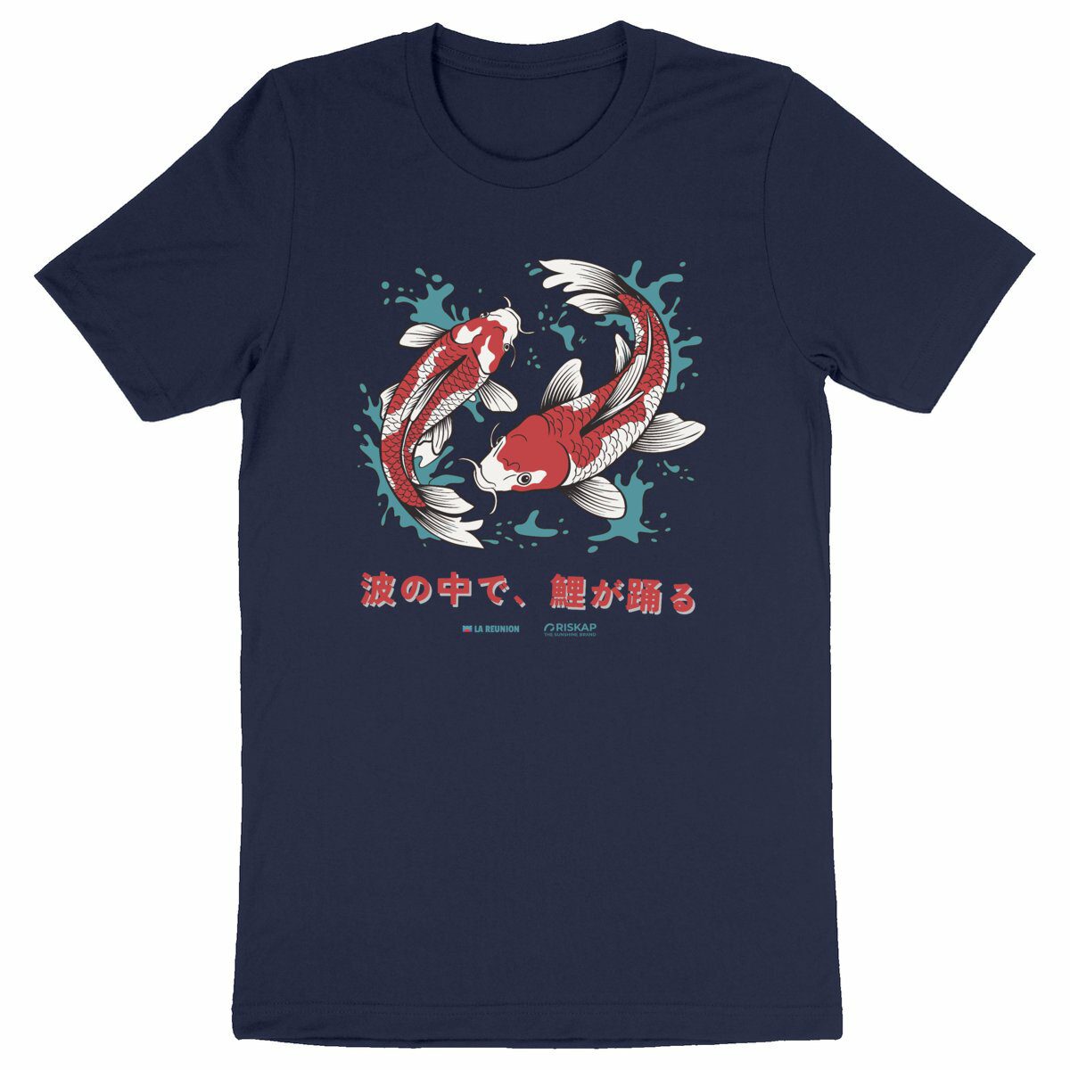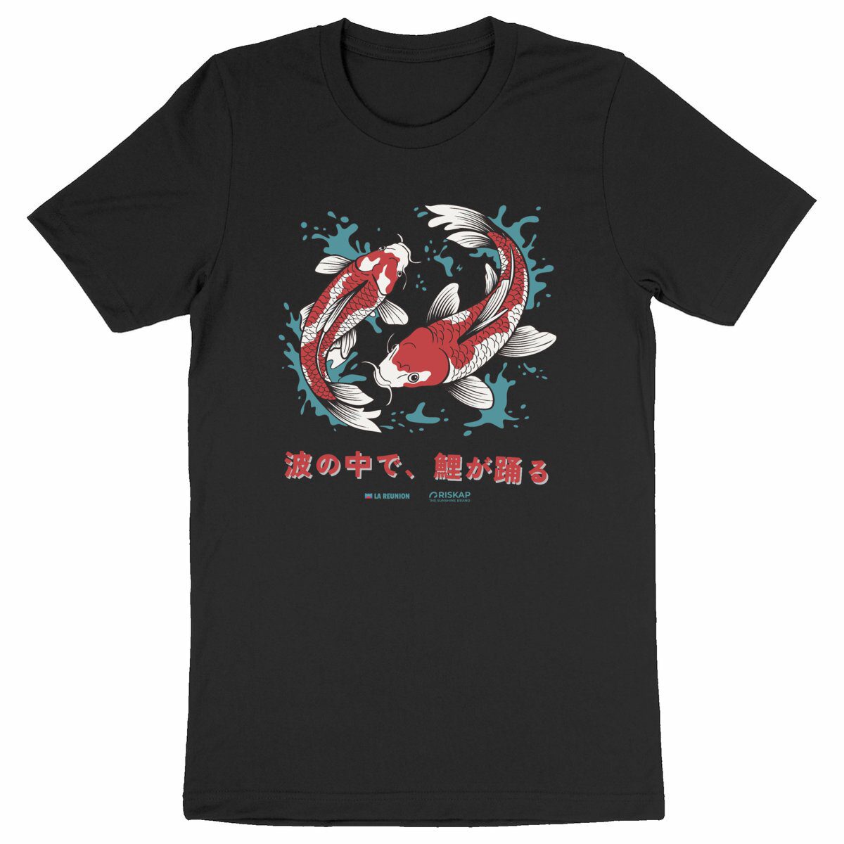 Ce design captivant, illustrant des carpes koï dansant parmi les vagues, invoque la sérénité et la force, faisant de ce T-shirt un incontournable pour les amateurs de style zen.