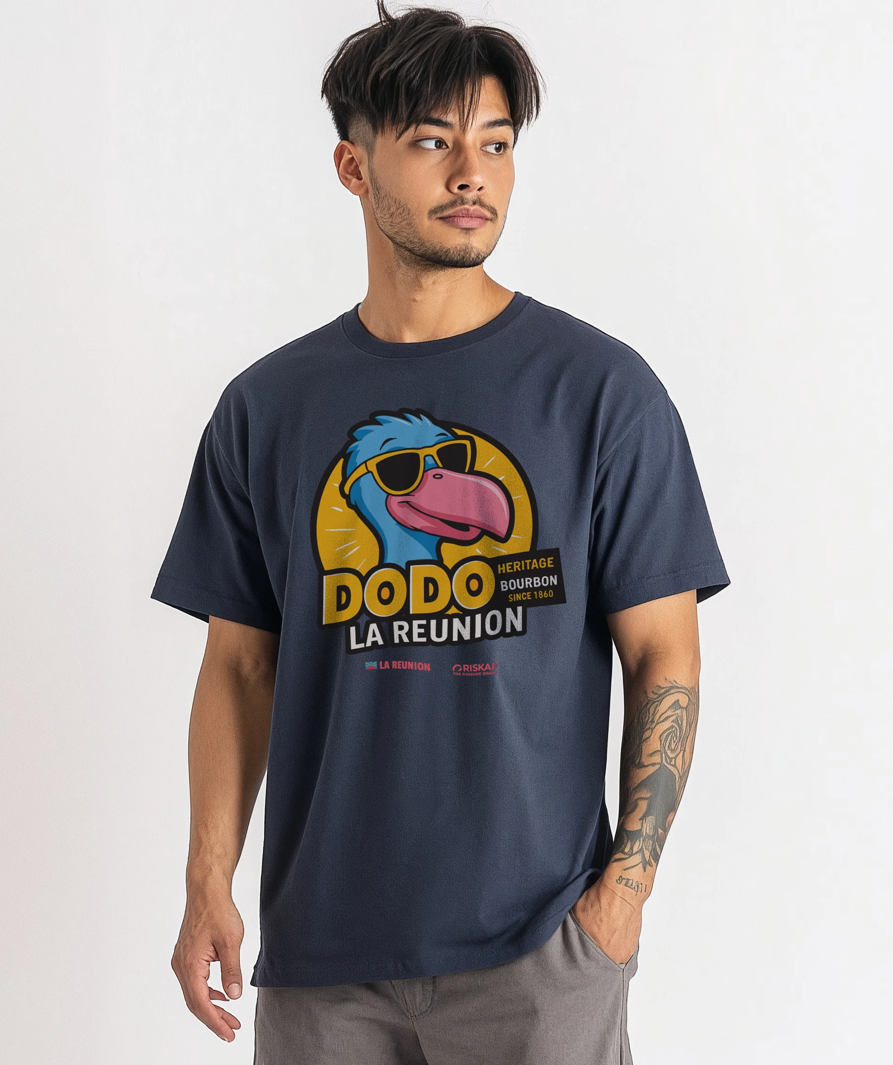 T-shirt Homme – Dodo Heritage – Ce t-shirt « Dodo Heritage » en coton biologique célèbre l’île de La Réunion avec son design unique du dodo. Un hommage stylé et écoresponsable disponible du XS au 4XL.