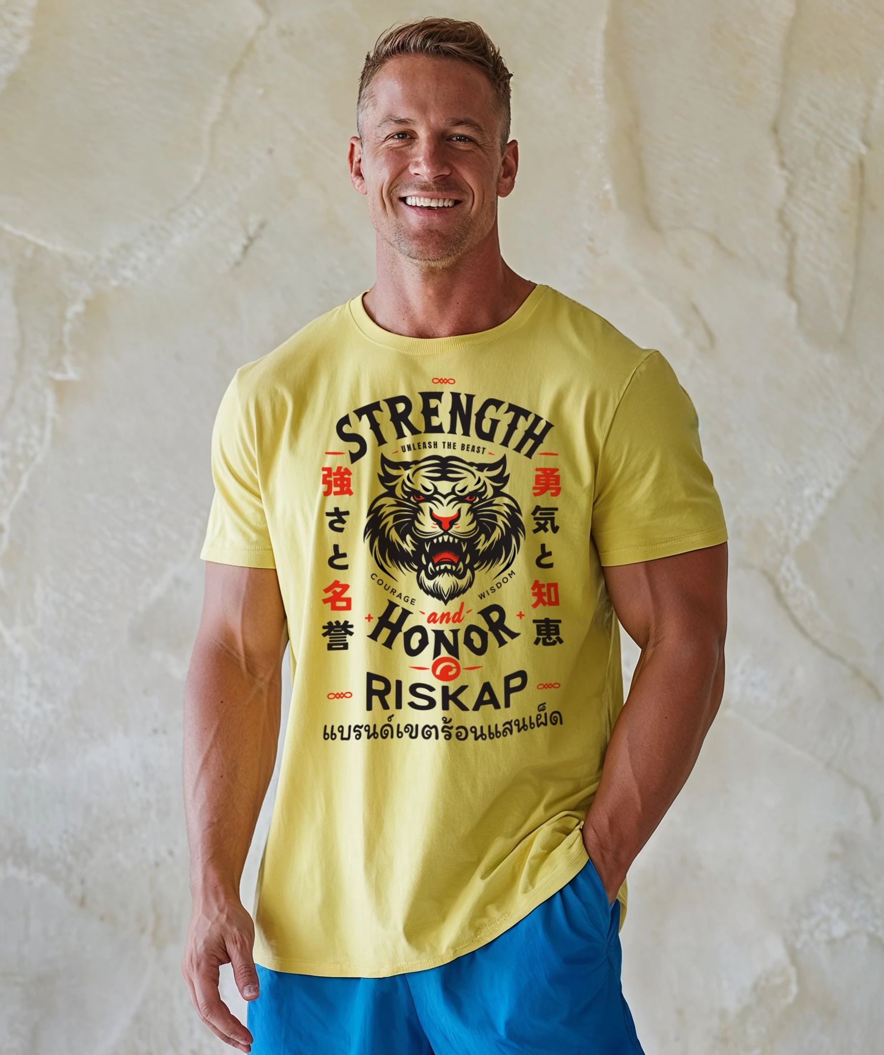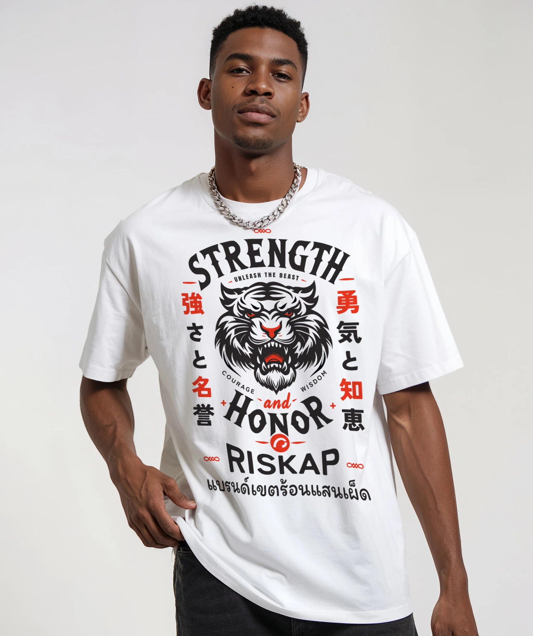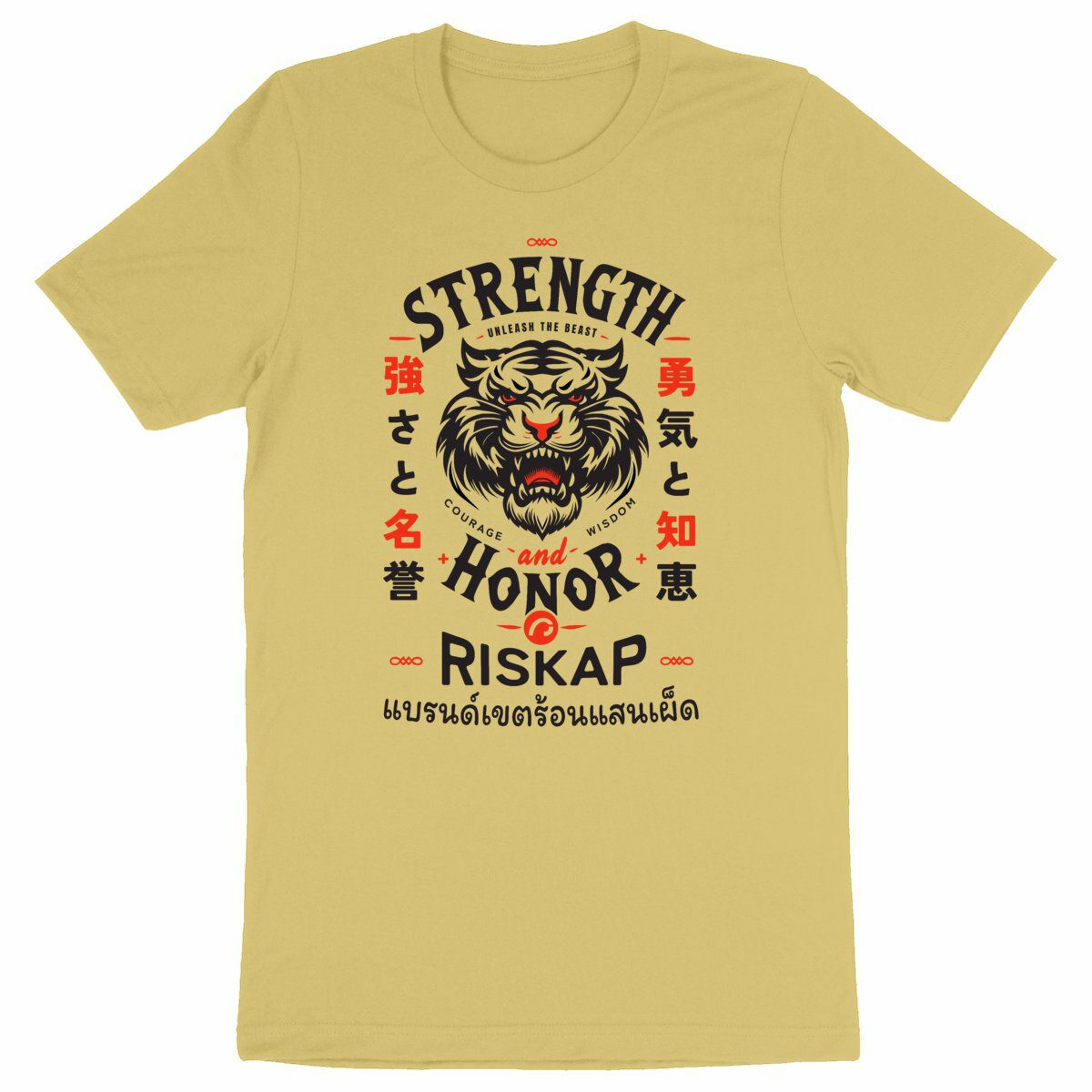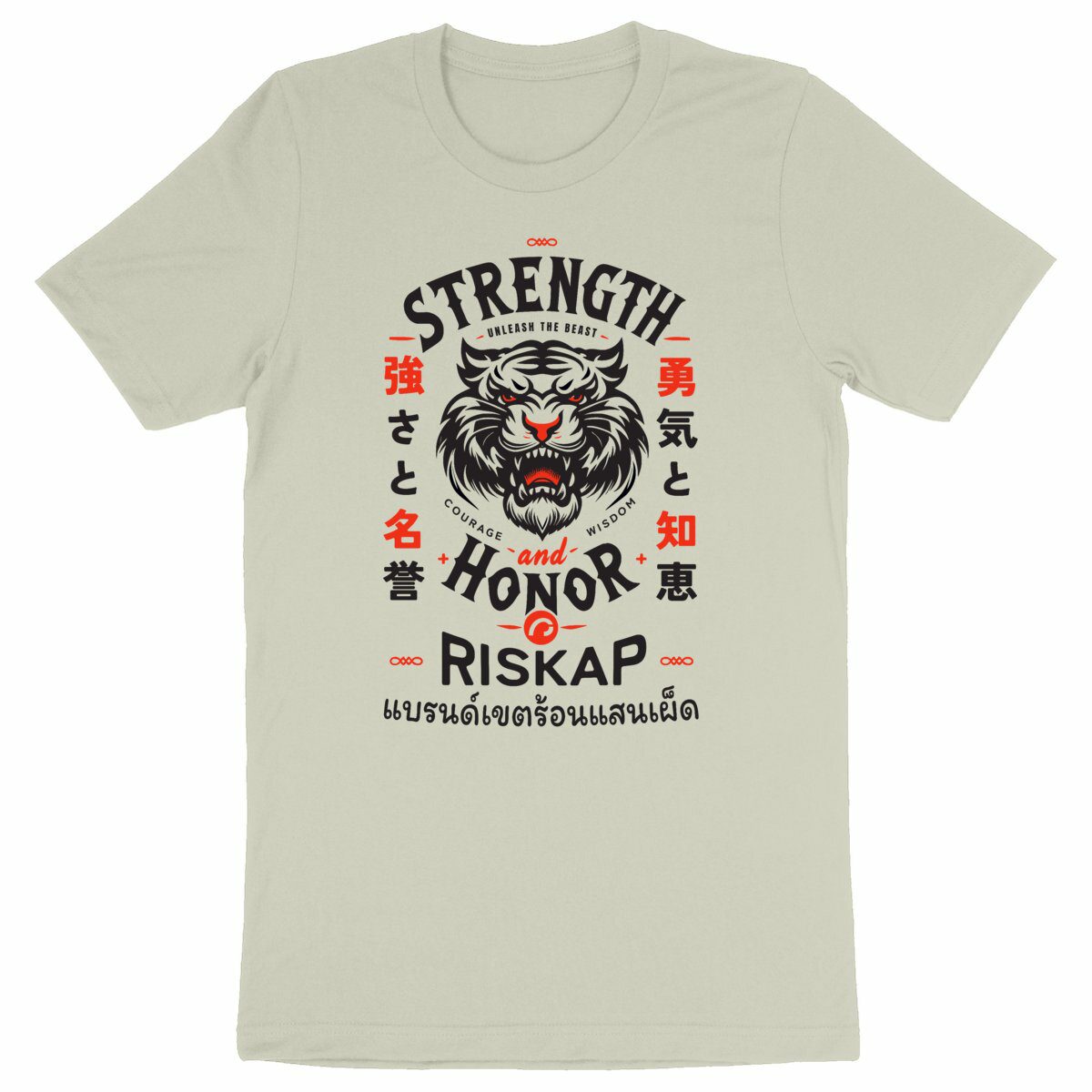 - Design exclusif avec un tigre et les mots « Strength and Honor«
