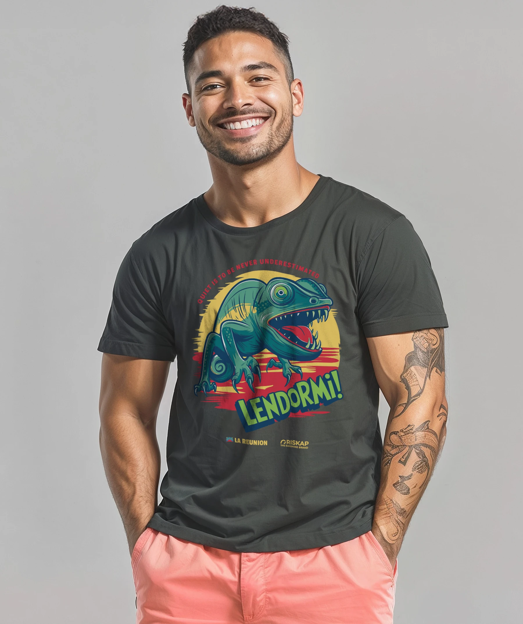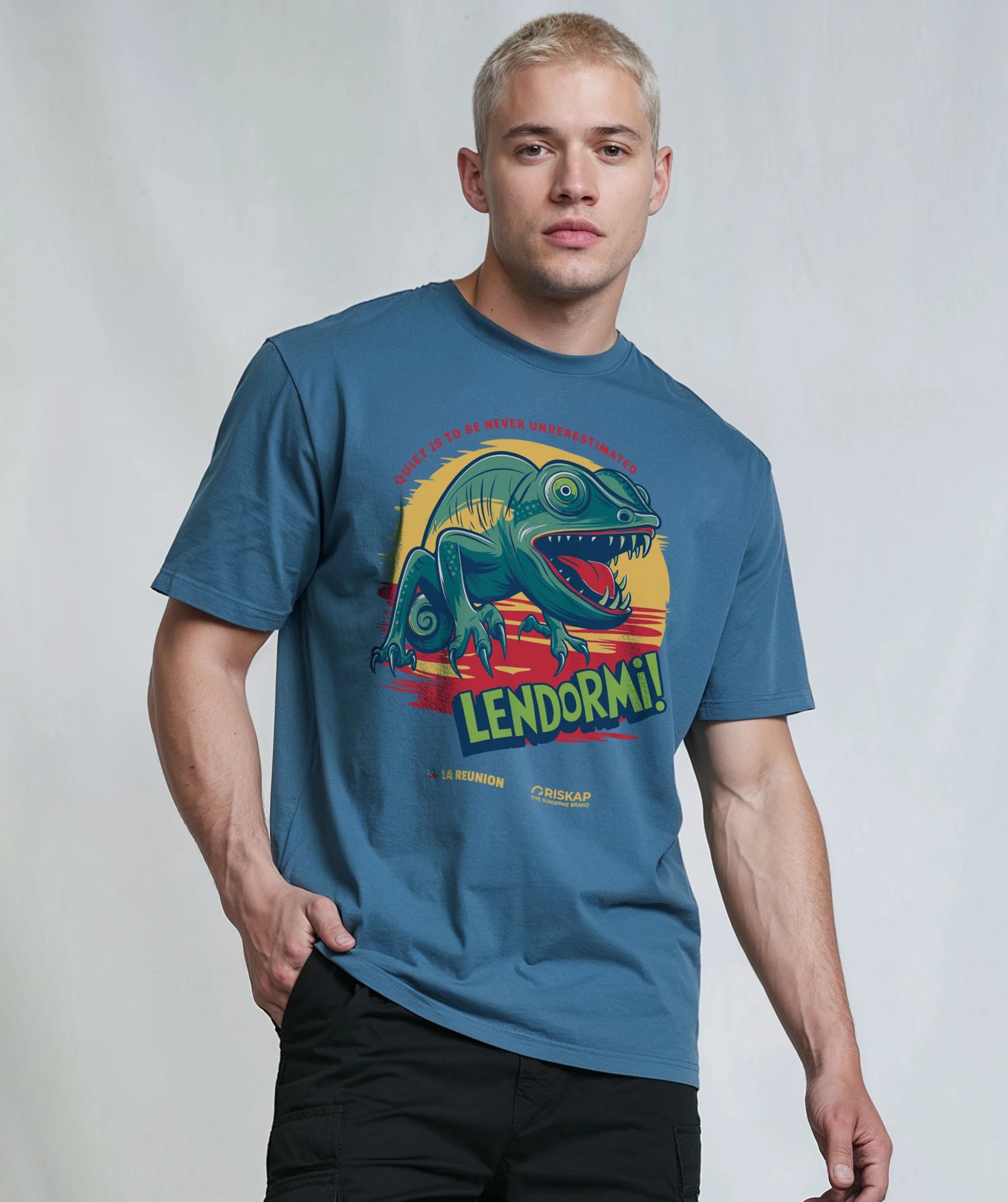 Découvrez notre T-shirt homme « Lendormi » en coton bio premium. Ce design vibrant, avec son lézard emblématique et ses couleurs éclatantes, capture l’essence de l’île de la Réunion. Parfait pour les amoureux de la nature et les passionnés de mode durable.