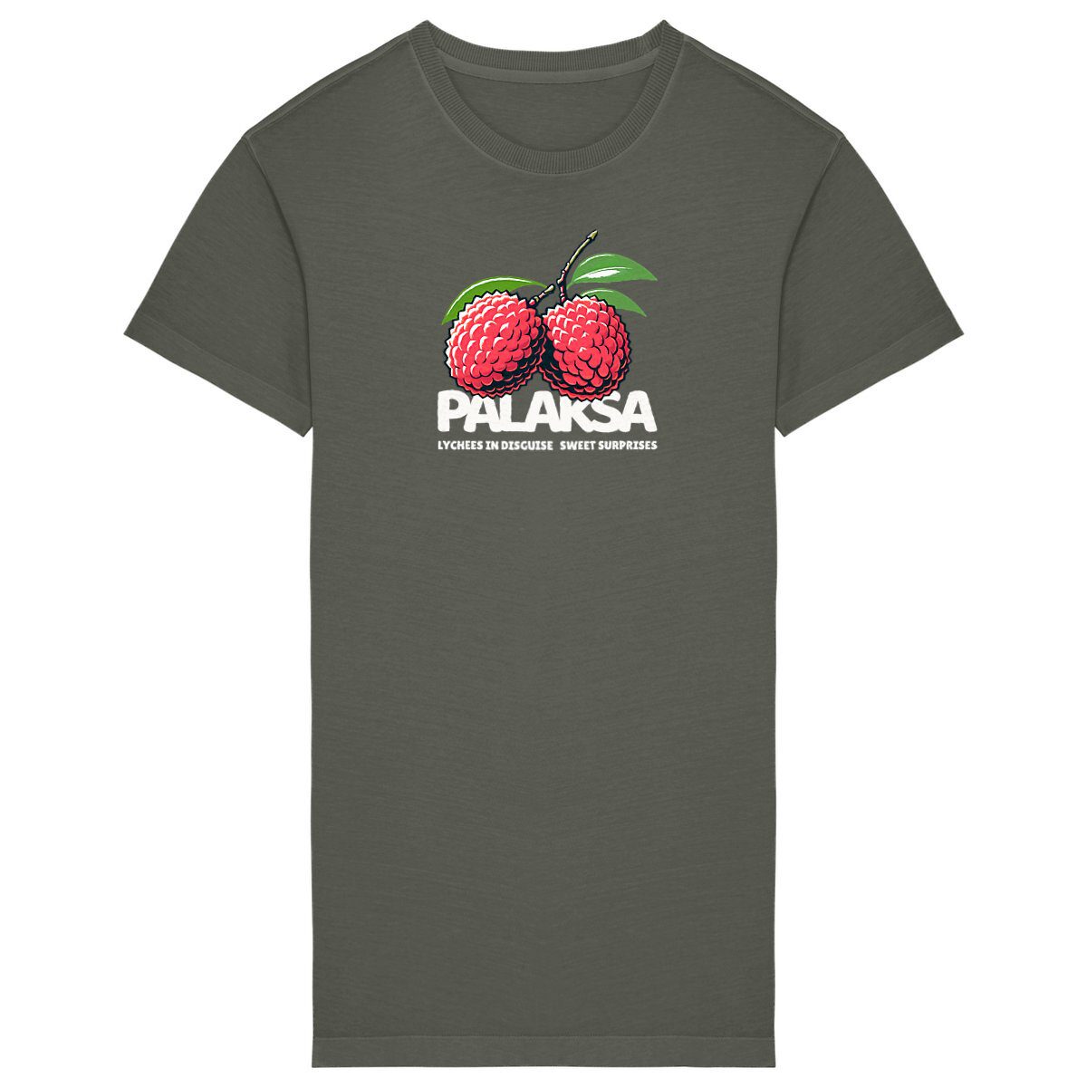 Disponible uniquement sur riskap.shop, ne manquez pas l’opportunité d’acquérir cette pièce unique de la collection Palaksa by Riskap! Exprimez-vous avec notre T-shirt Robe « Lychees in Disguise » et affirmez votre style distinctif.