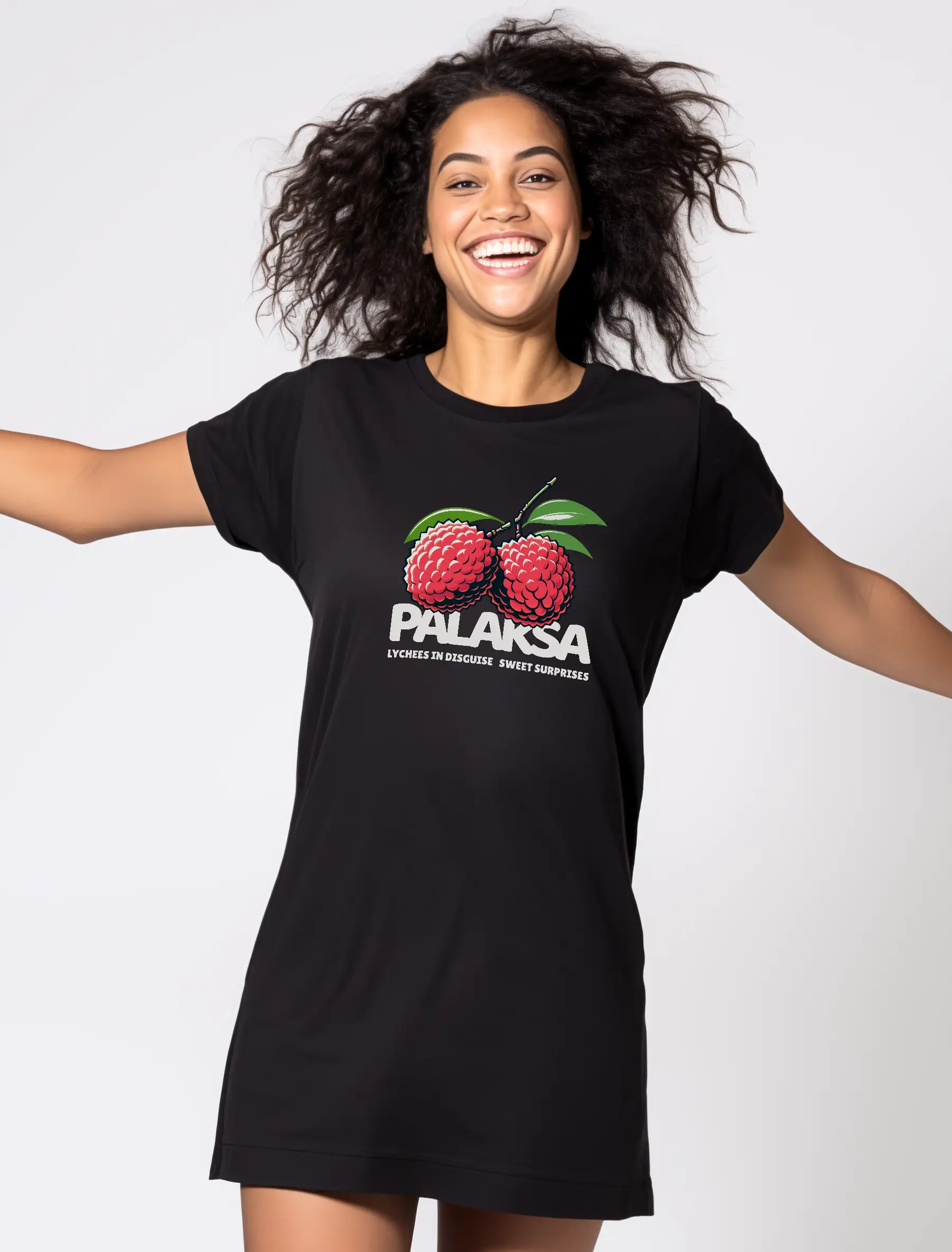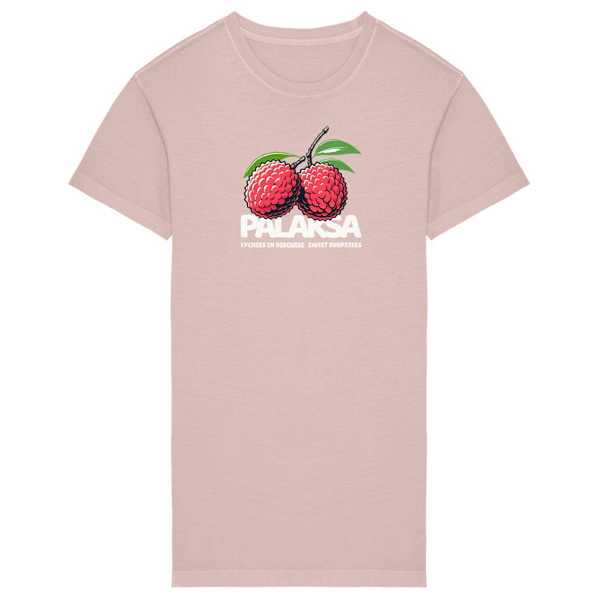 T-shirt Robe Femme – Lychees Disguise – Découvrez l’élégance audacieuse de la T-shirt Robe « Lychees in Disguise » de Palaksa, une pièce exclusive chez Riskap. Conçue avec des matériaux de qualité, cette robe unique à l’effigie de litchis façon cerises apporte une touche d’humour à votre garde-robe, disponible uniquement sur riskap.shop.
