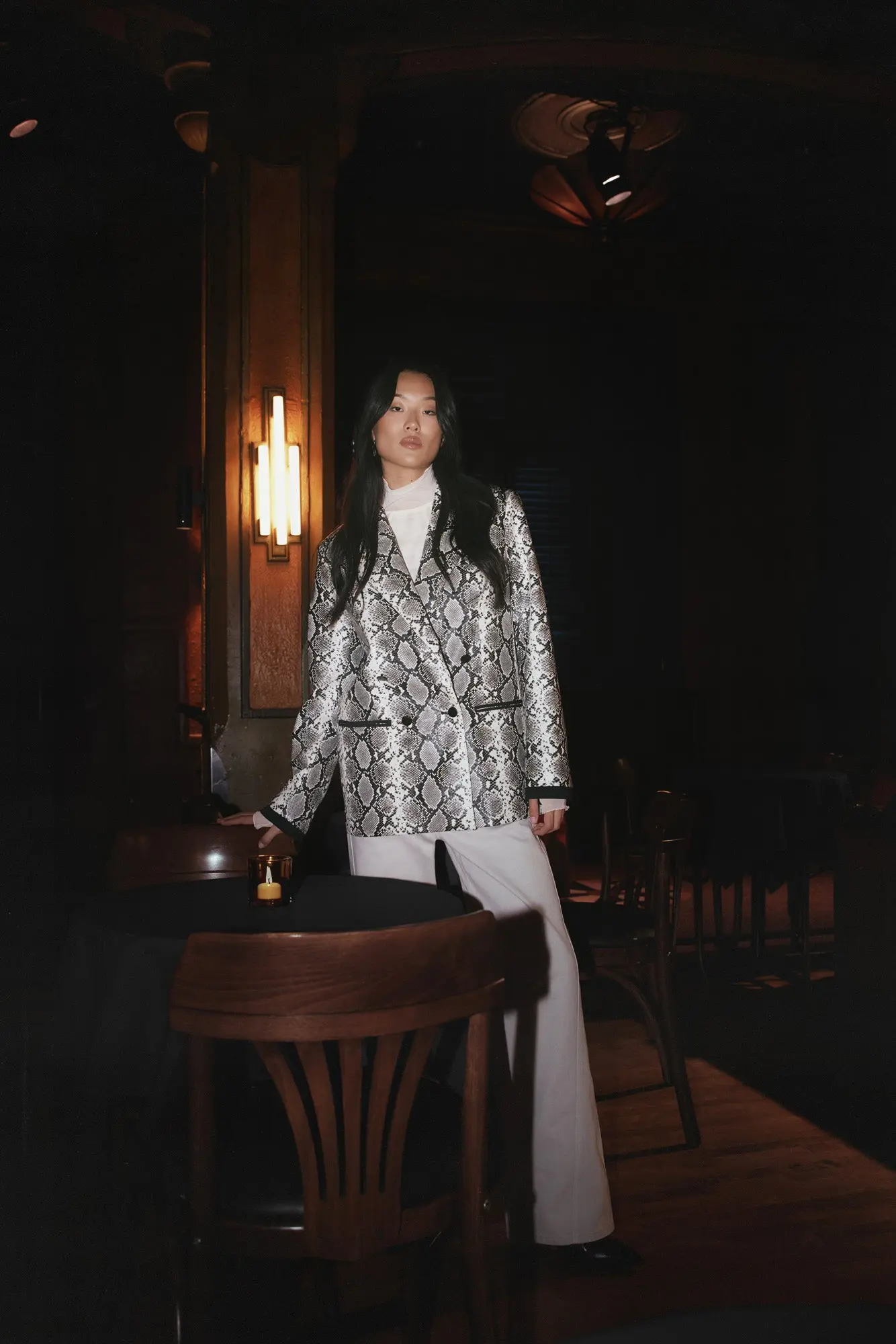 Le veston en similicuir effet peau de serpent Teron est unique, audacieux et domine la saison. Rafraîchissez votre garde-robe avec un motif qui a de la personnalité, une coupe structurée et des détails impeccables.