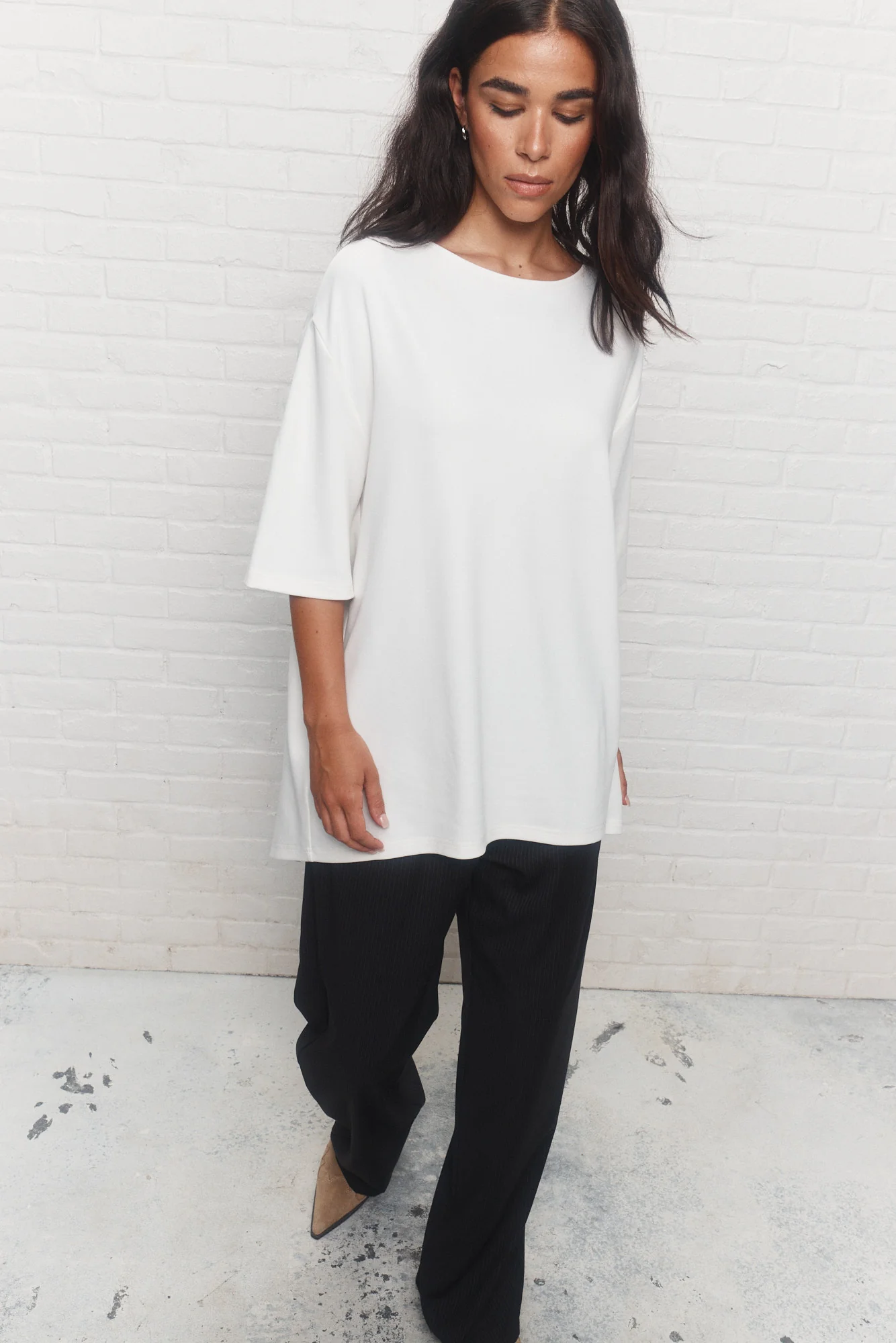 - Si vous êtes moins confortable avec les coupes amples, vous pouvez opter pour une taille plus petite afin d’obtenir un effet légèrement plus près du corps.