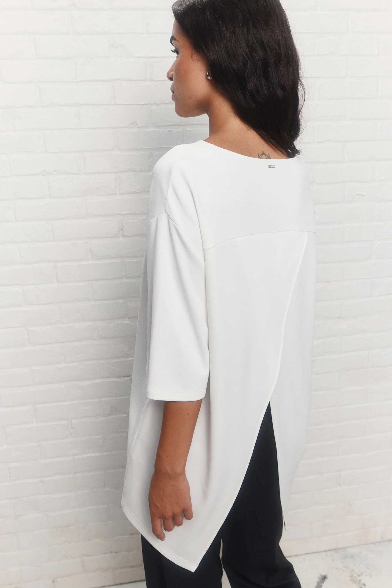 - Découpe et ouverture croisée au dos avec bas en pointe