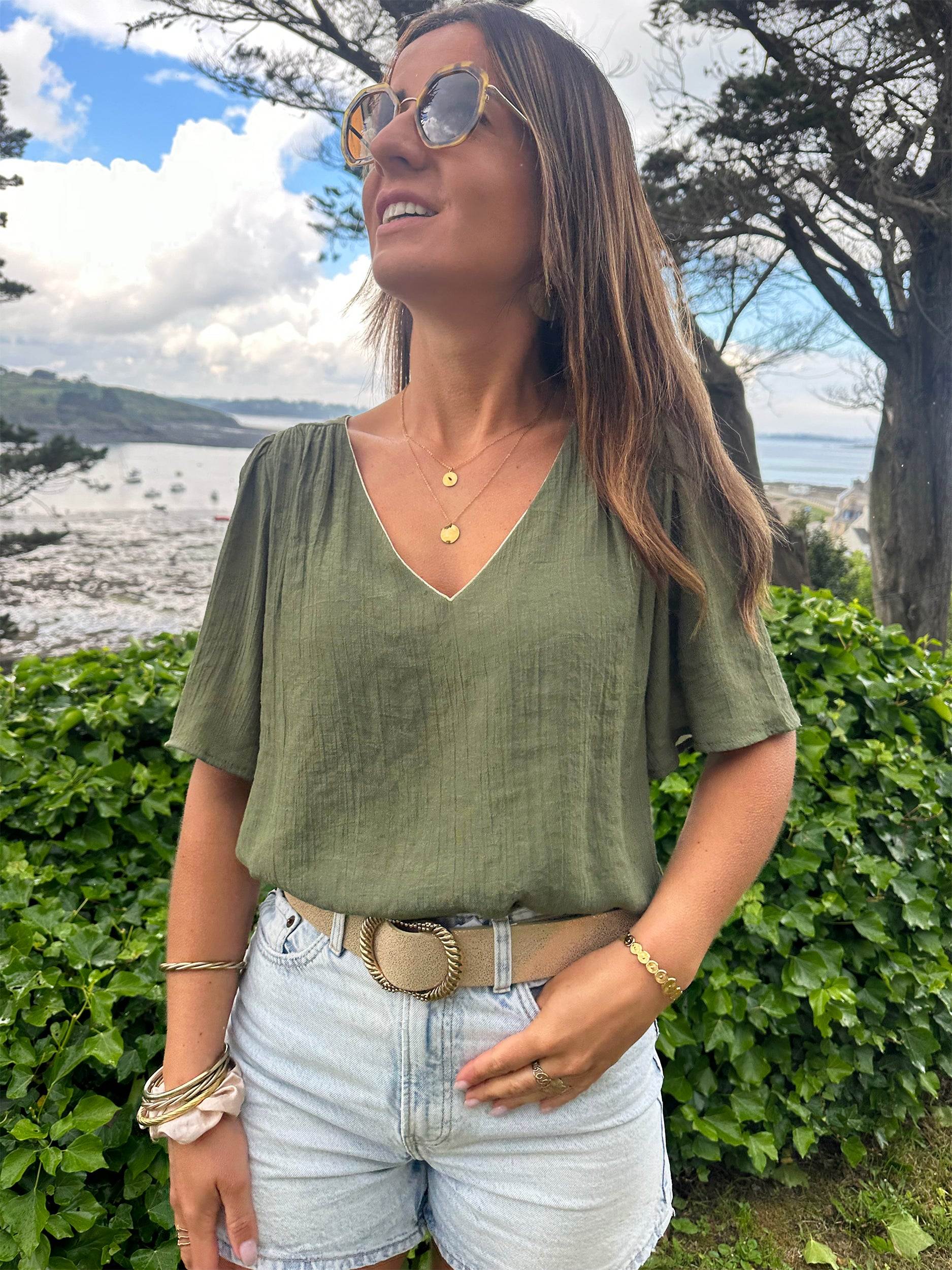 Quoi de mieux qu’un top simple et efficace ? Alba est un top fluide virevoltant qui vous sublimera ! Top uni kaki Discret biais doré à l’encolure Manches courtes Modèle doublé sur l’avant Effet de transparence dans le dos et au niveau des manches On adore le porter avec un short et des sandales dorées […]