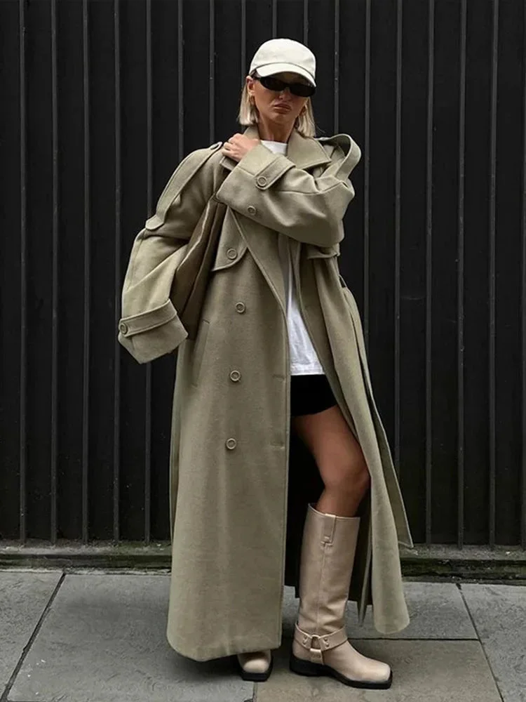 Trench-coat oversize conçu pour un usage quotidien. Sa coupe ample permet une liberté de mouvement et le port de vêtements superposés. Convient à différents contextes et saisons.