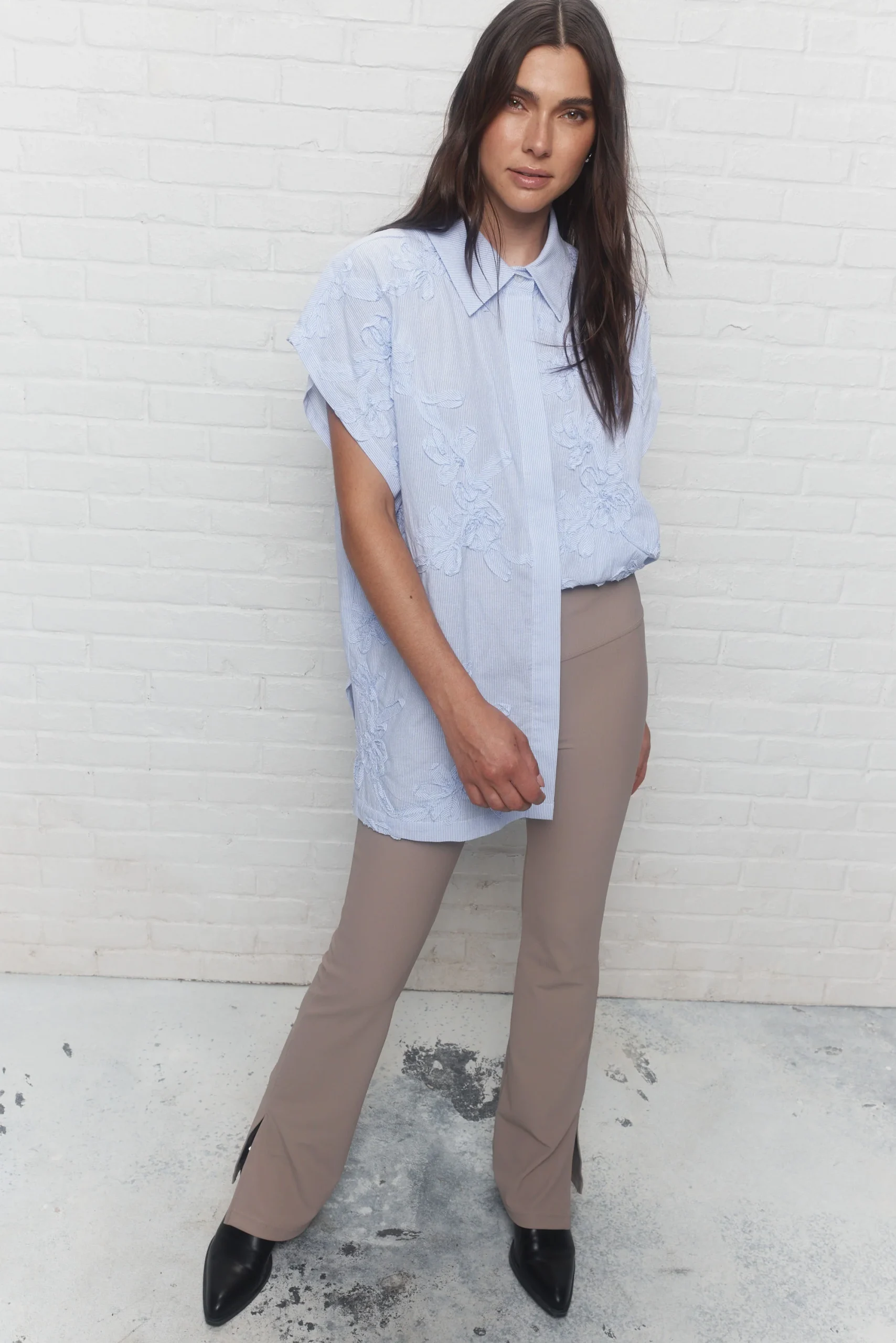 Conseils grandeur Vous pouvez prendre votre grandeur habituelle de pantalon. Si vous avez tendance à varier entre deux tailles, nous conseillons d’opter pour la plus petite taille des deux. Spécifications Coupe évasée Taille haute et large bande de taille style legging Tissu extensible Transparence : non Fentes latérales aux ourlets Non doublé Entrejambe : 31 […]