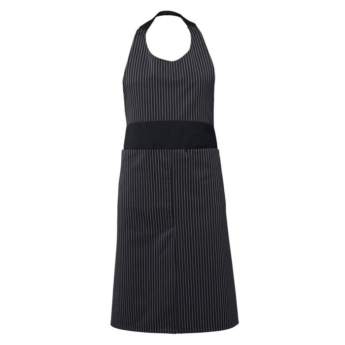 Tablier Tour de cou réglable par boutons pressions Poches dans la découpe taille Découpe ceinture smoking Fente de marche croisée Ceinture courte à nouer dos : 54,5cm Hauteur : 91,5cm/ Largeur : 84,5cm