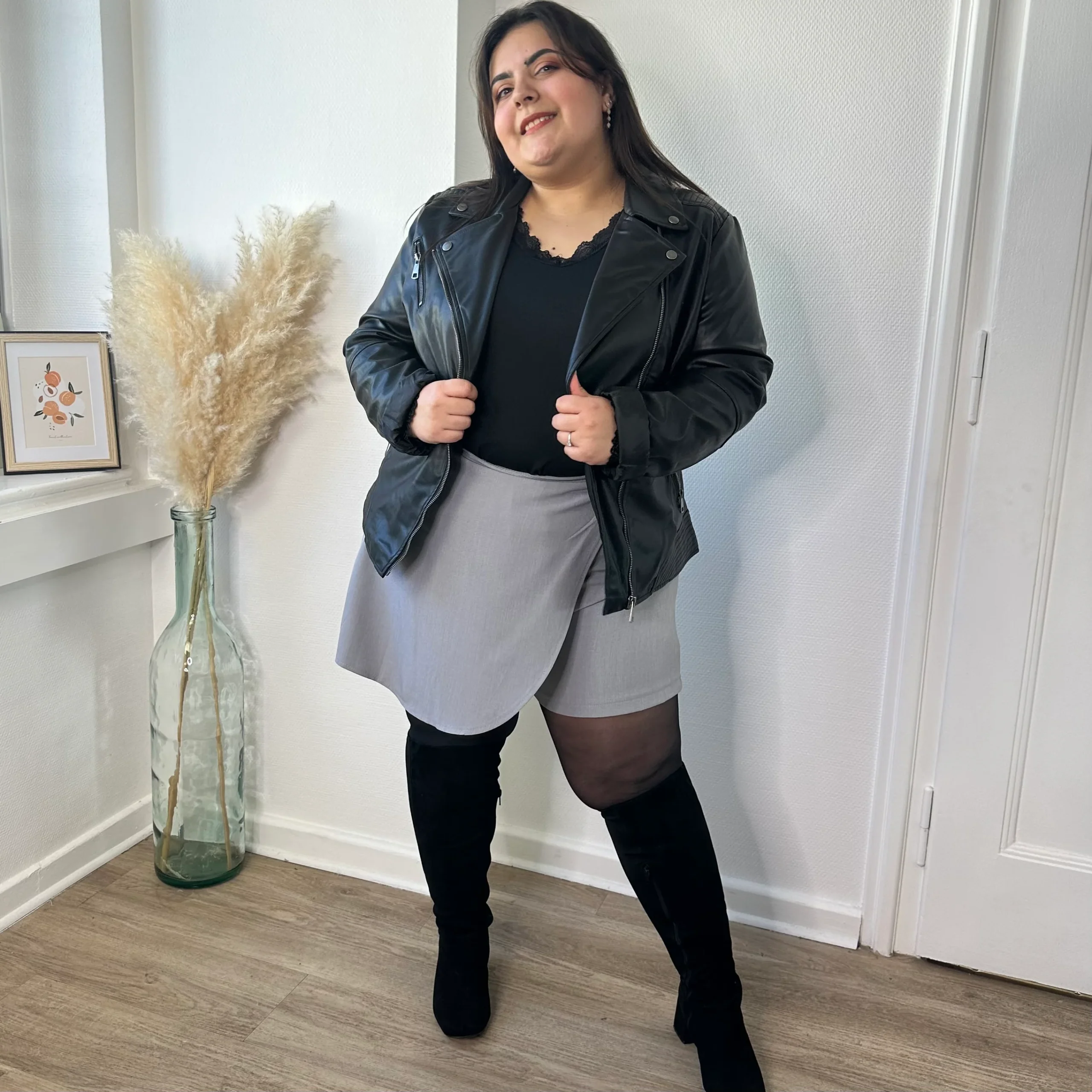 Elle se distingue par son tissu similicuir souple et confortable, qui donne un effet cuir sans compromis sur la liberté de mouvement. Les détails zippés apportent une touche de style en plus, tandis que les poches pratiques vous permettent de ranger vos essentiels en toute simplicité. Ce perfecto est un allié idéal pour rehausser n’importe quelle tenue !