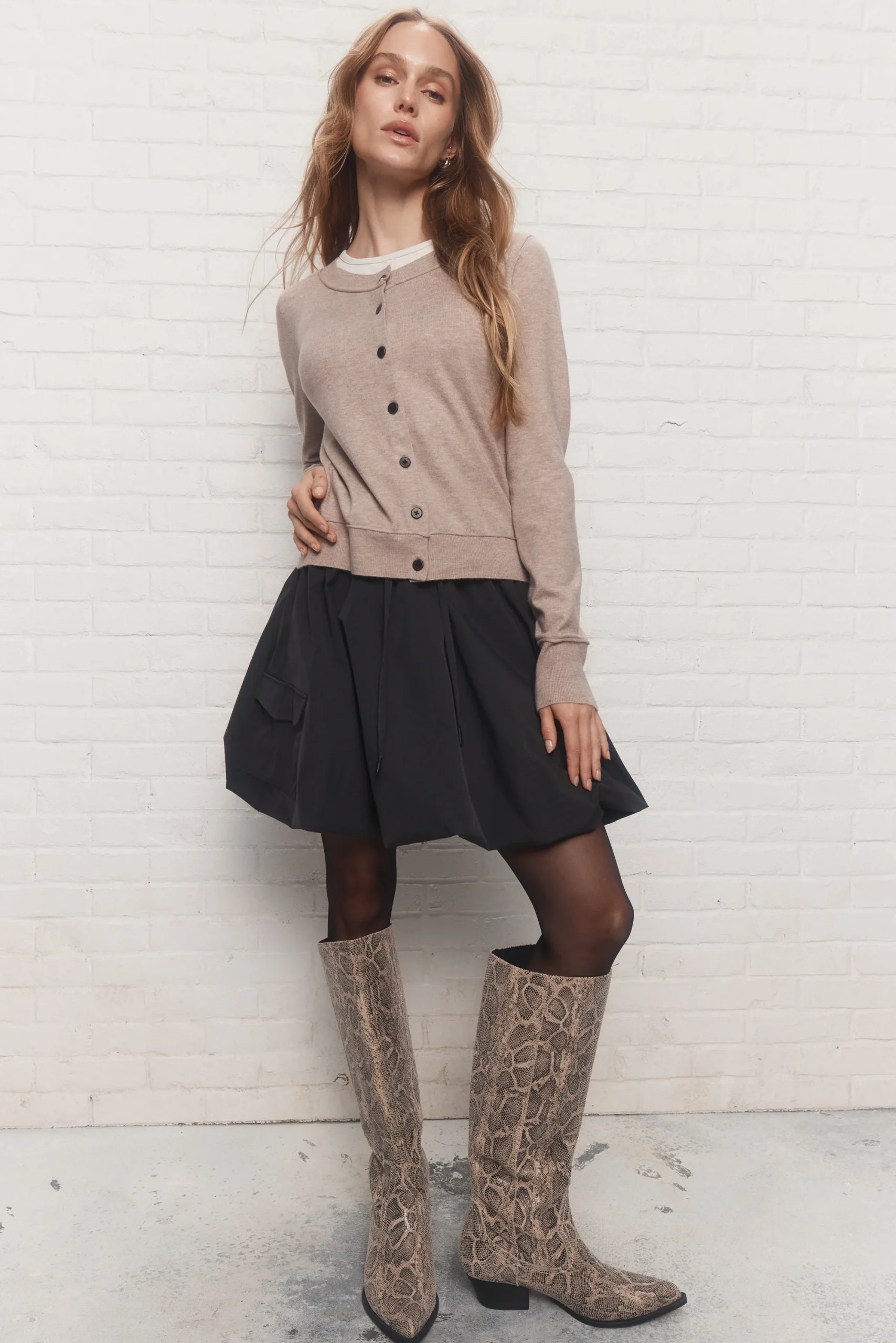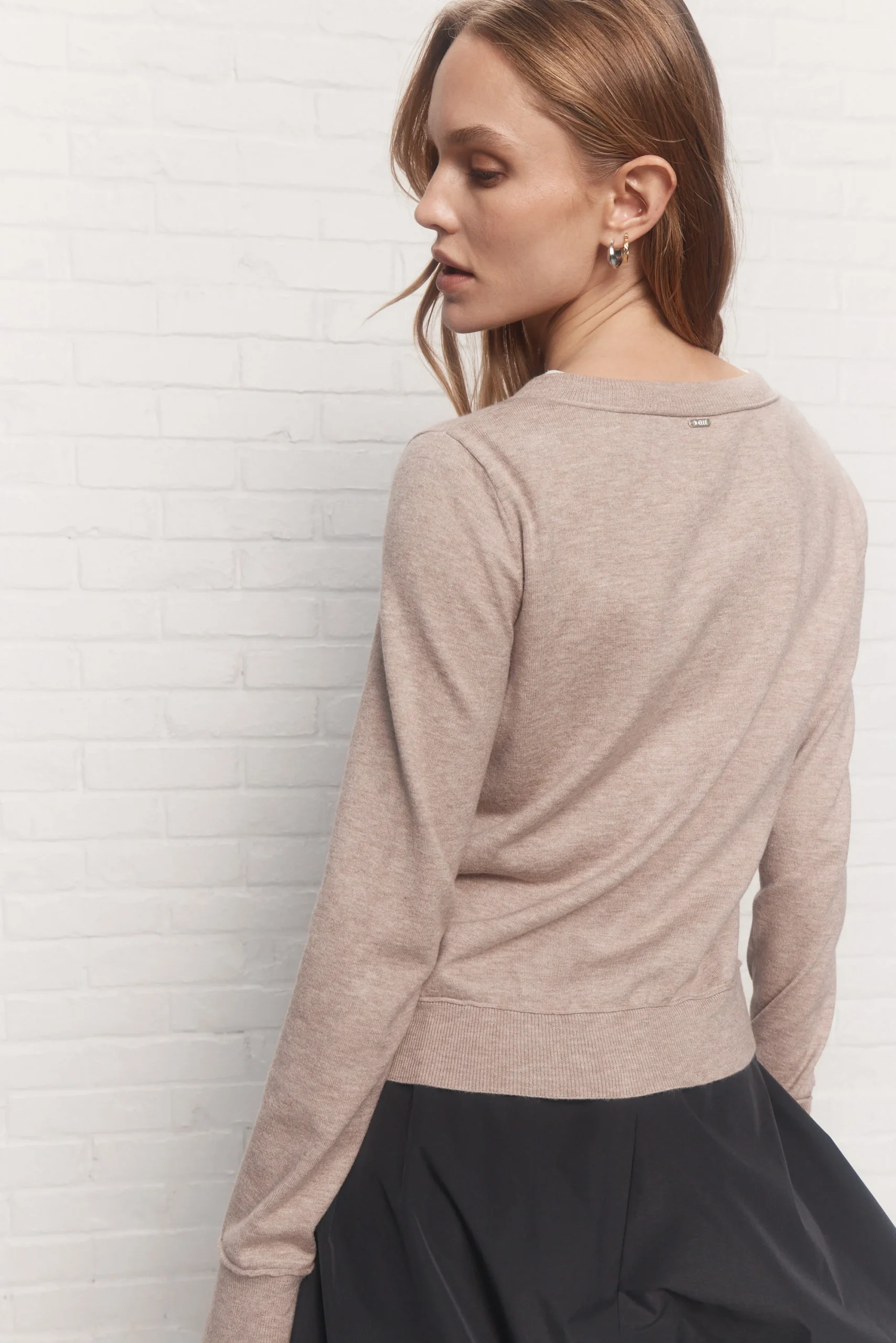 Cardigan Femme Ajusté à Manches Longues Côtelées