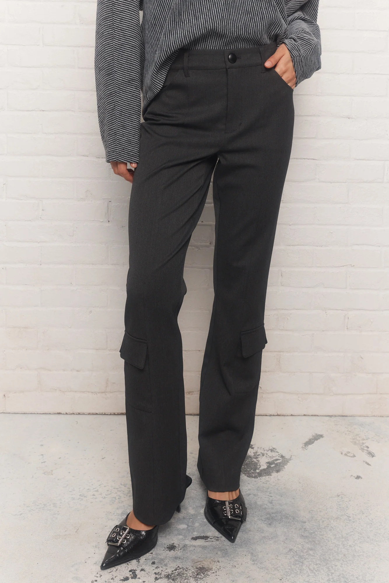– Portez le pantalon noir à jambe évasée avec un haut plus chic ou plus décontracté selon le look de la journée.