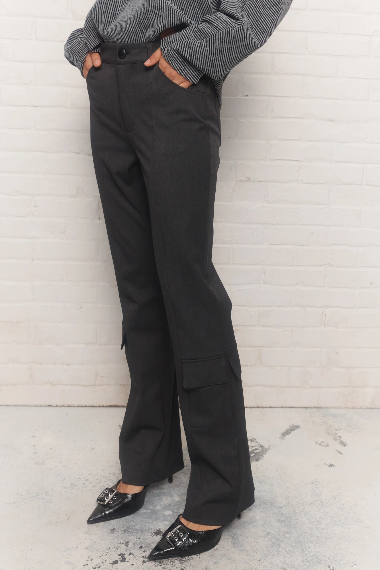 Voici Wisp, le pantalon noir à jambe évasée style « bootleg ». La coupe flatte différentes morphologies et équilibre les proportions du corps. À la fois minimaliste et utilitaire avec ses poches, Wisp est une pièce intemporelle.